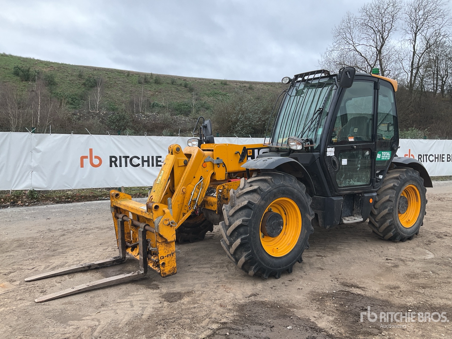 Enclosed Cab, Load Moment Indicator, 7 m Max Lift Height, 3100 kg Max Lift Capacity, 1070 mm Forks, Manual Coupler, Auxiliary Hydraulic Plumbing, 15.5/80-24 Tires