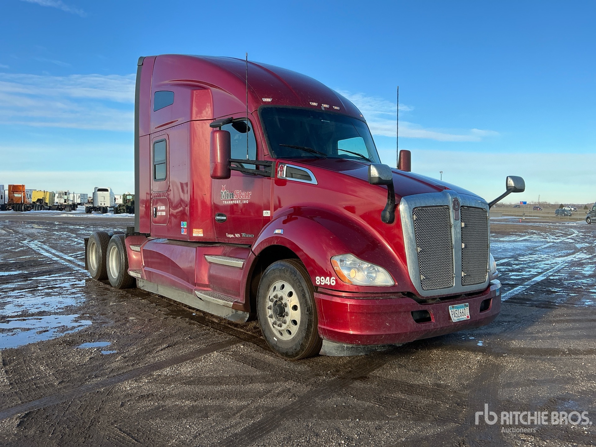 Located in Lane 26 Spot 146, Paccar MX-13 455 hp Engine, 2019 US EPA Label, 30079 Engine hrs, Eaton Fuller 10-Speed Manual Transmission, 12350 lb Front Axle, 40000 lb Rears, 52350 lb GVWR, 72 in High Rise Sleeper Cab, 234 in Wheelbase, Air Suspension, Aluminum Outer Wheels, 295/75R22.5, Air Sliding 5th Wheel, Dual Fuel Tanks