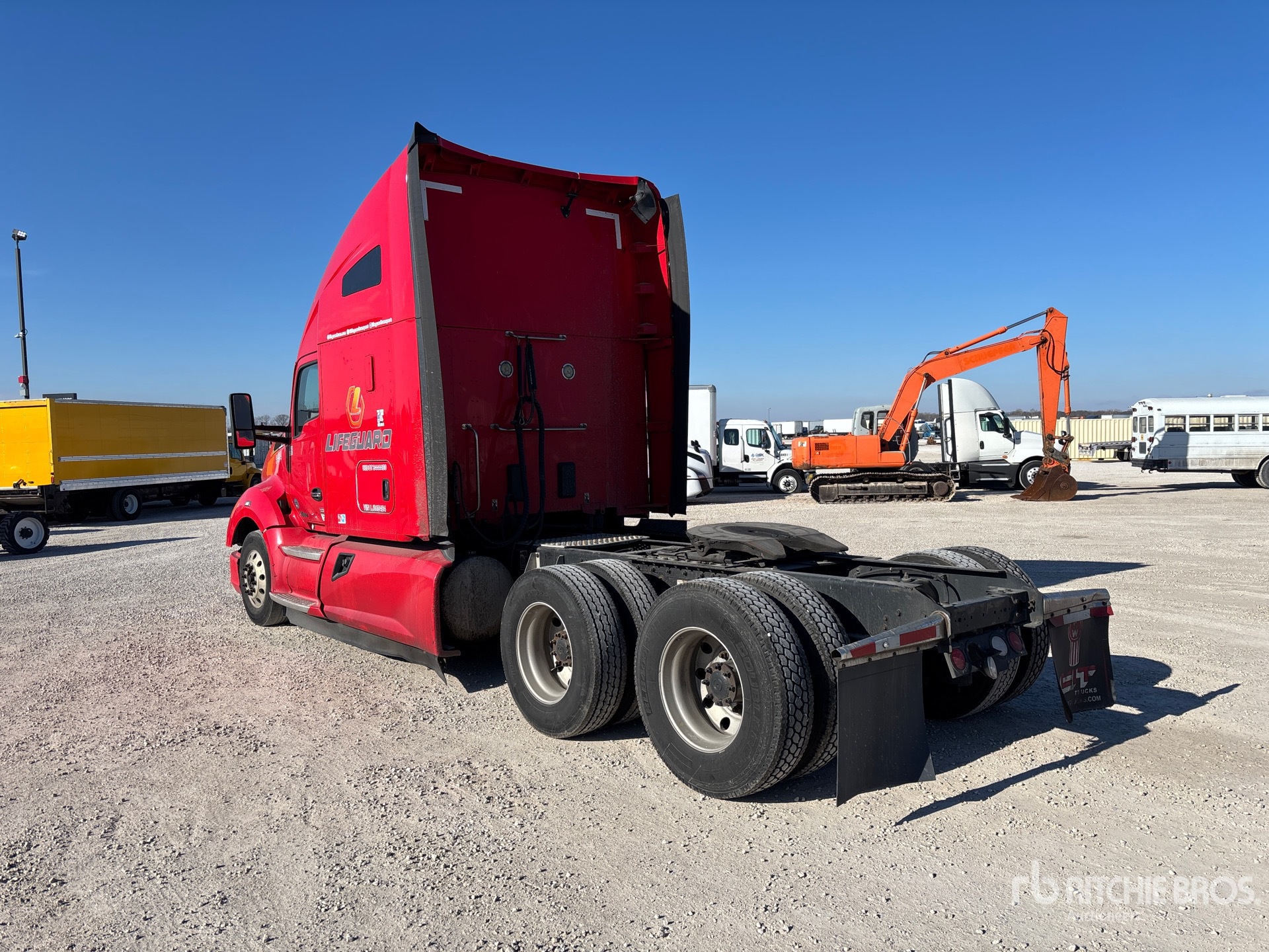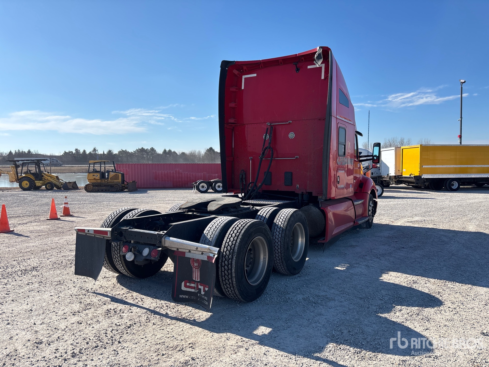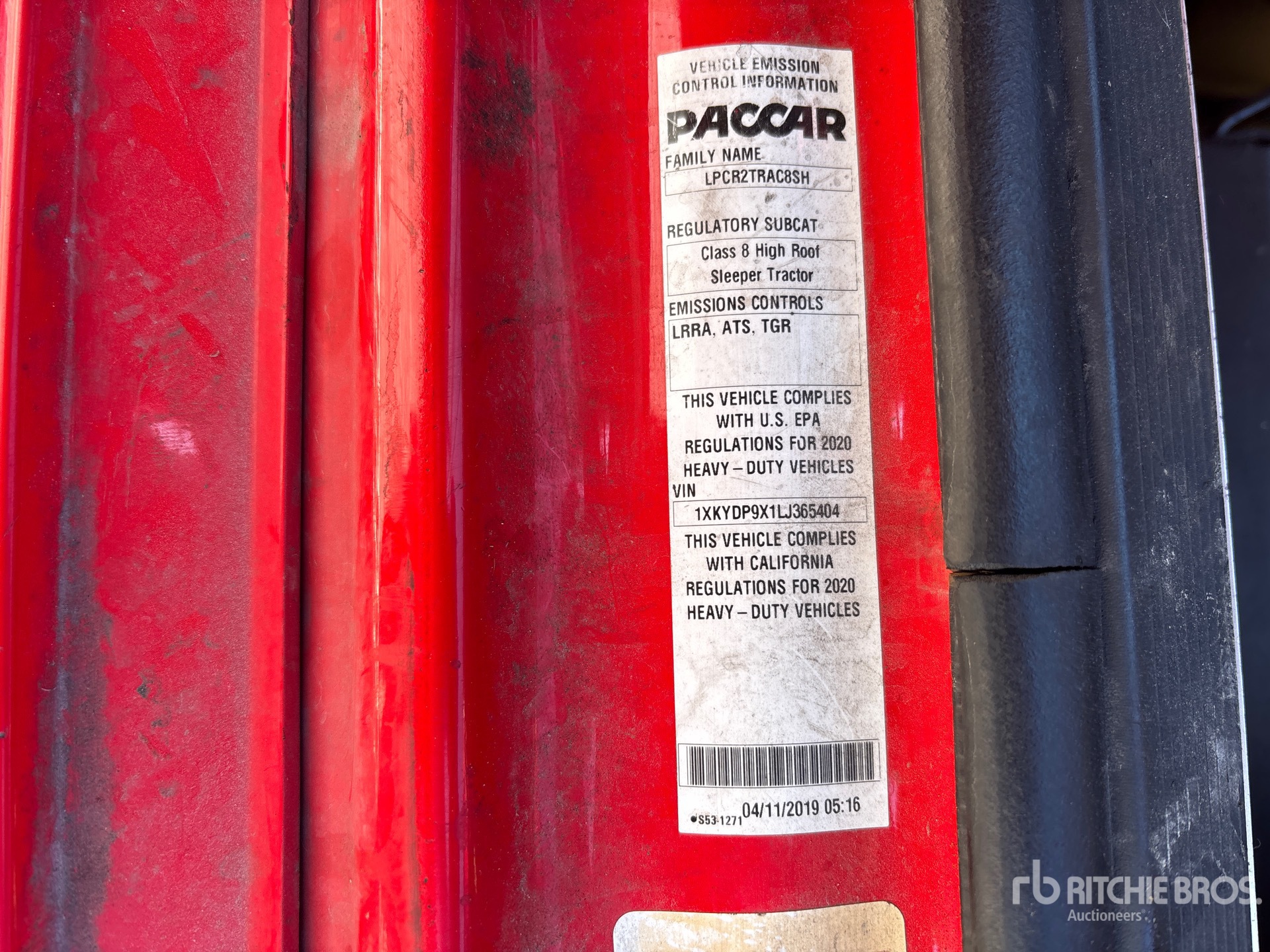 Paccar MX-13 455 hp Engine, 2019 US EPA Label, 23911.3 Engine hrs, Eaton Fuller RTLO-16913A 13-Speed Manual, 13200 lb Front Axle, 40000 lb Rears, 53200 lb GVWR, Engine Brake, 72 in High Rise Sleeper Cab, Bunk Beds, 239 in Wheelbase, Air Suspension, Aluminum Outer Wheels, 275/80R22.5 Front Tires, 295/75R22.5 Rear Tires, Air Sliding 5th Wheel, Dual Fuel Tanks