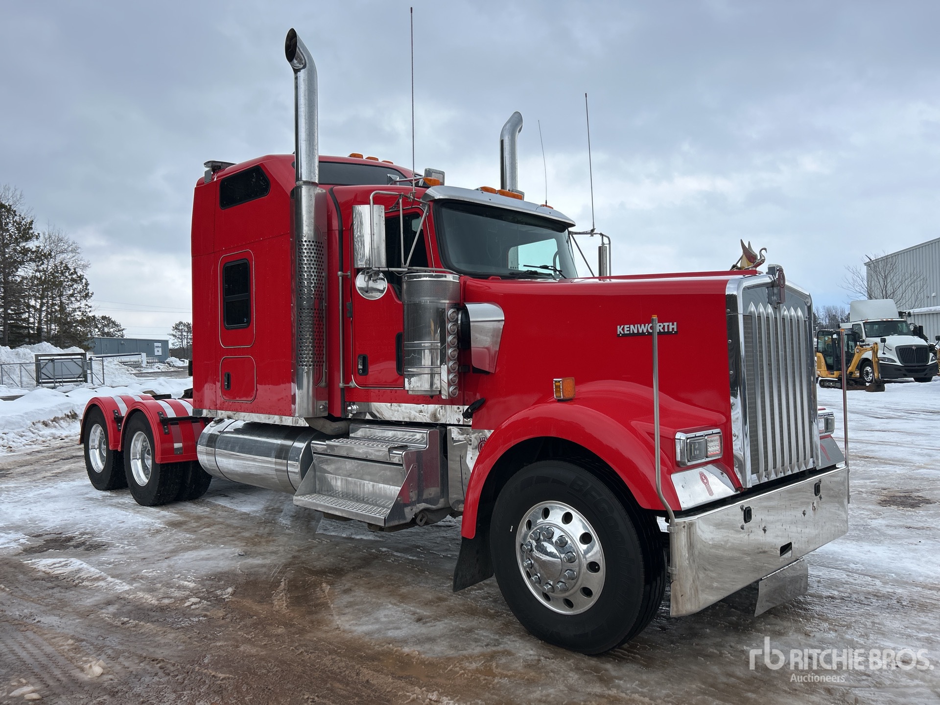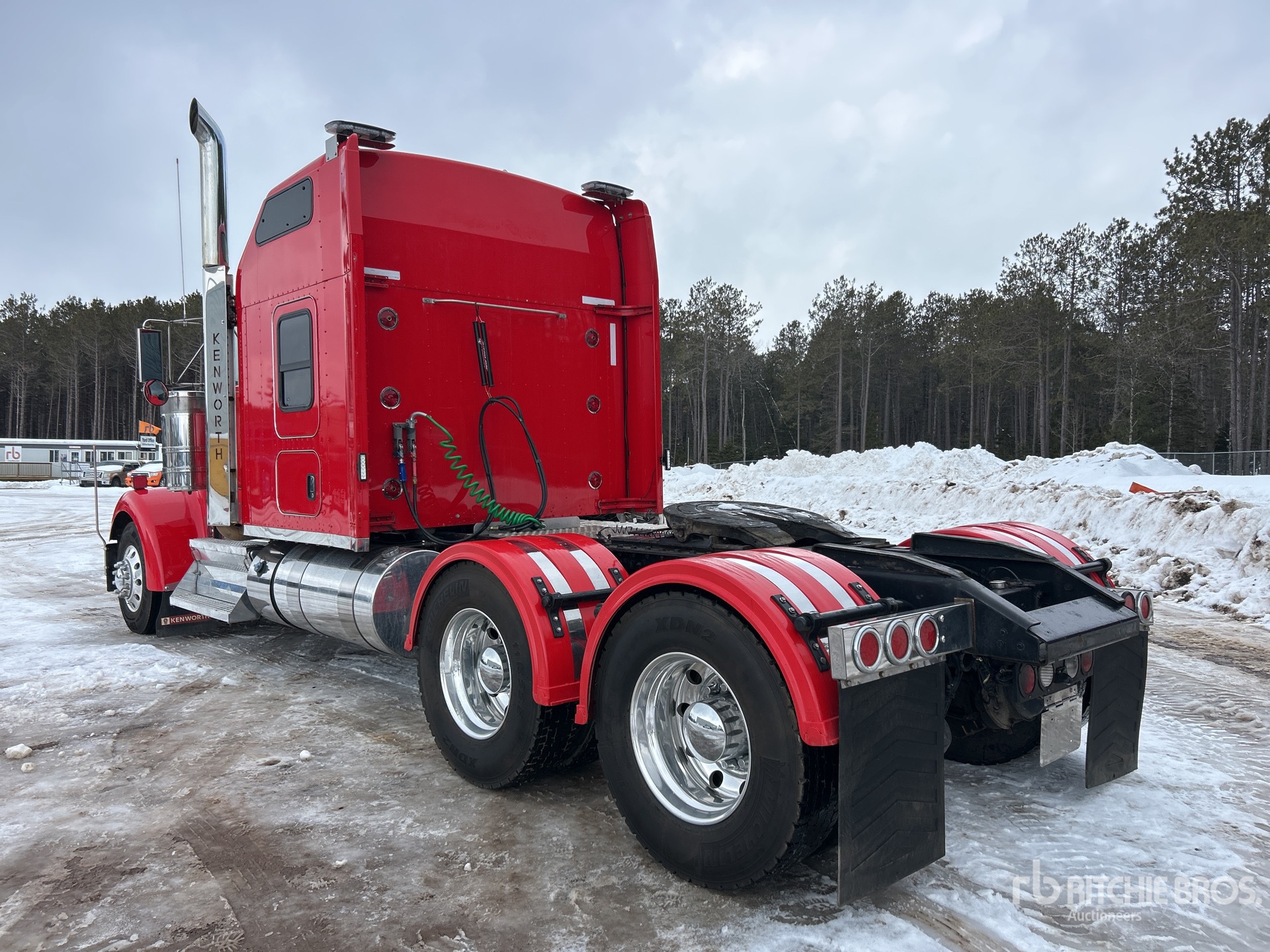 Cummins X15 565 hp Engine, 2018 US EPA Label, 9110 Engine hrs, Eaton Fuller 18-Speed Manual Transmission, 5988 kg Front Axle, 18144 kg Rears, 24132 kg GVWR, Engine Brake, Double Differential Locks, 62 in Mid Roof Sleeper Cab, Bunk Heater, 252 in Wheelbase, 8-Bag Air Suspension, Aluminum Wheels, 11R22.5, Air Sliding 5th Wheel, Dual Fuel Tanks