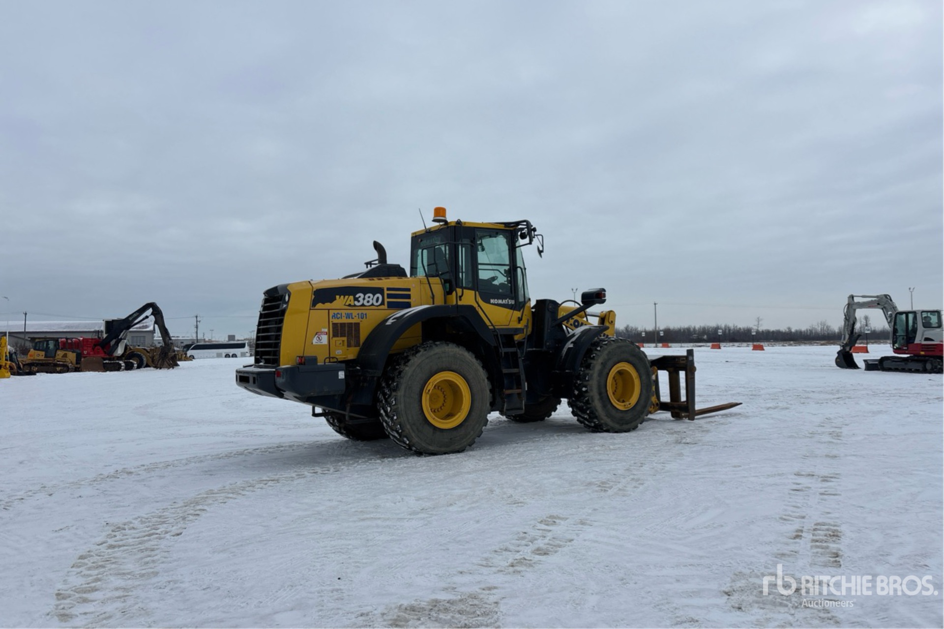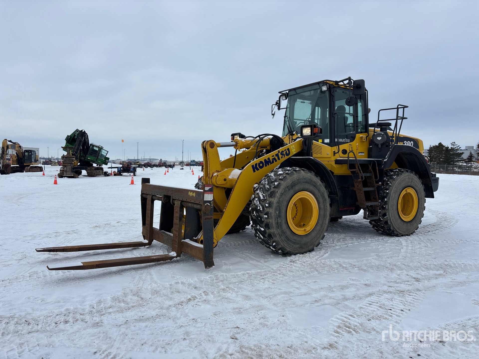 Enclosed Cab, Air Conditioner, Rear View Camera, Air Ride Seat, Ride Control, Autoshift, 2019 US EPA Label, Requires Diesel Exhaust Fluid, Hydraulic Coupler, 23.5R25 Tires, 72 in Forks