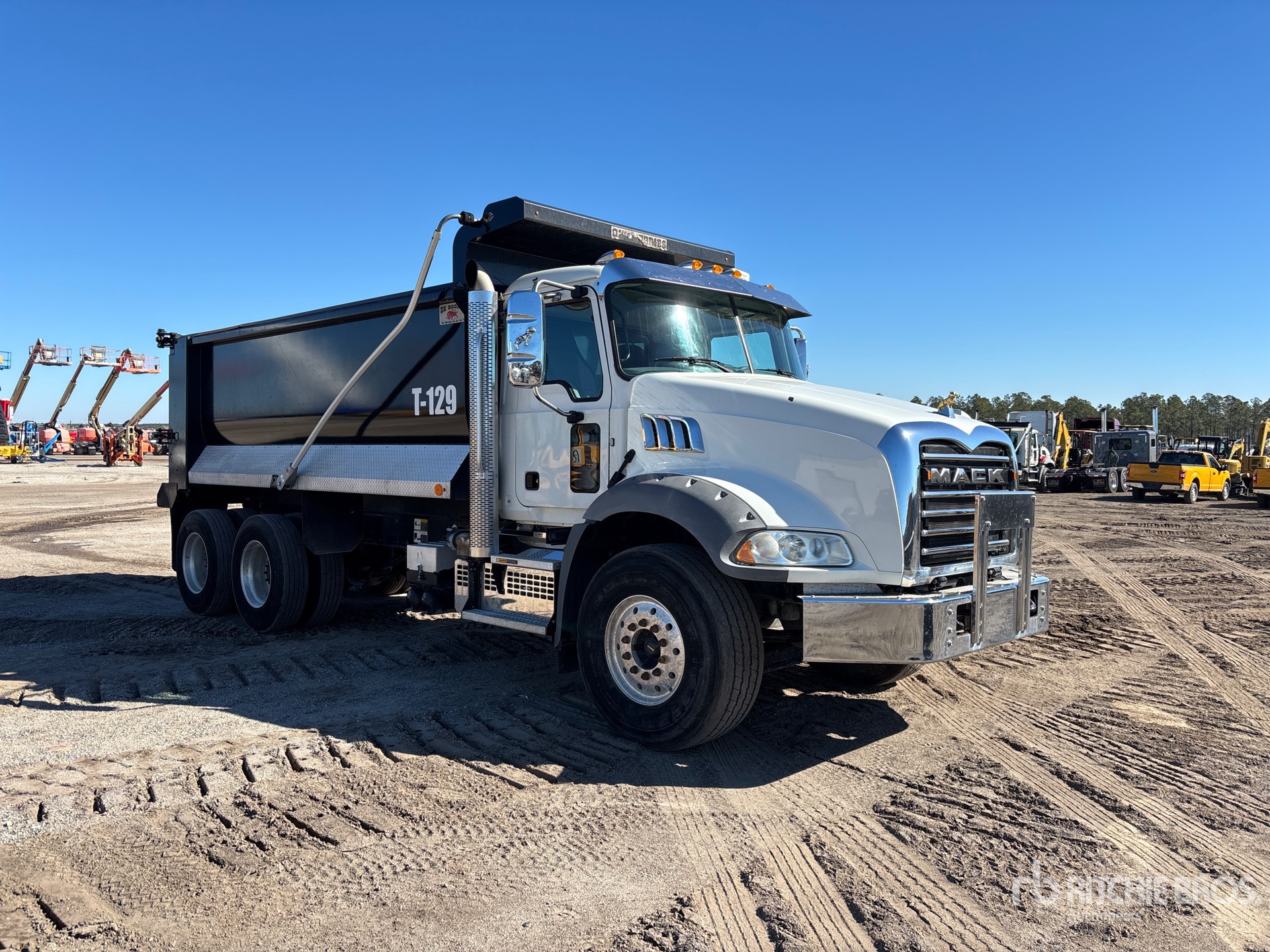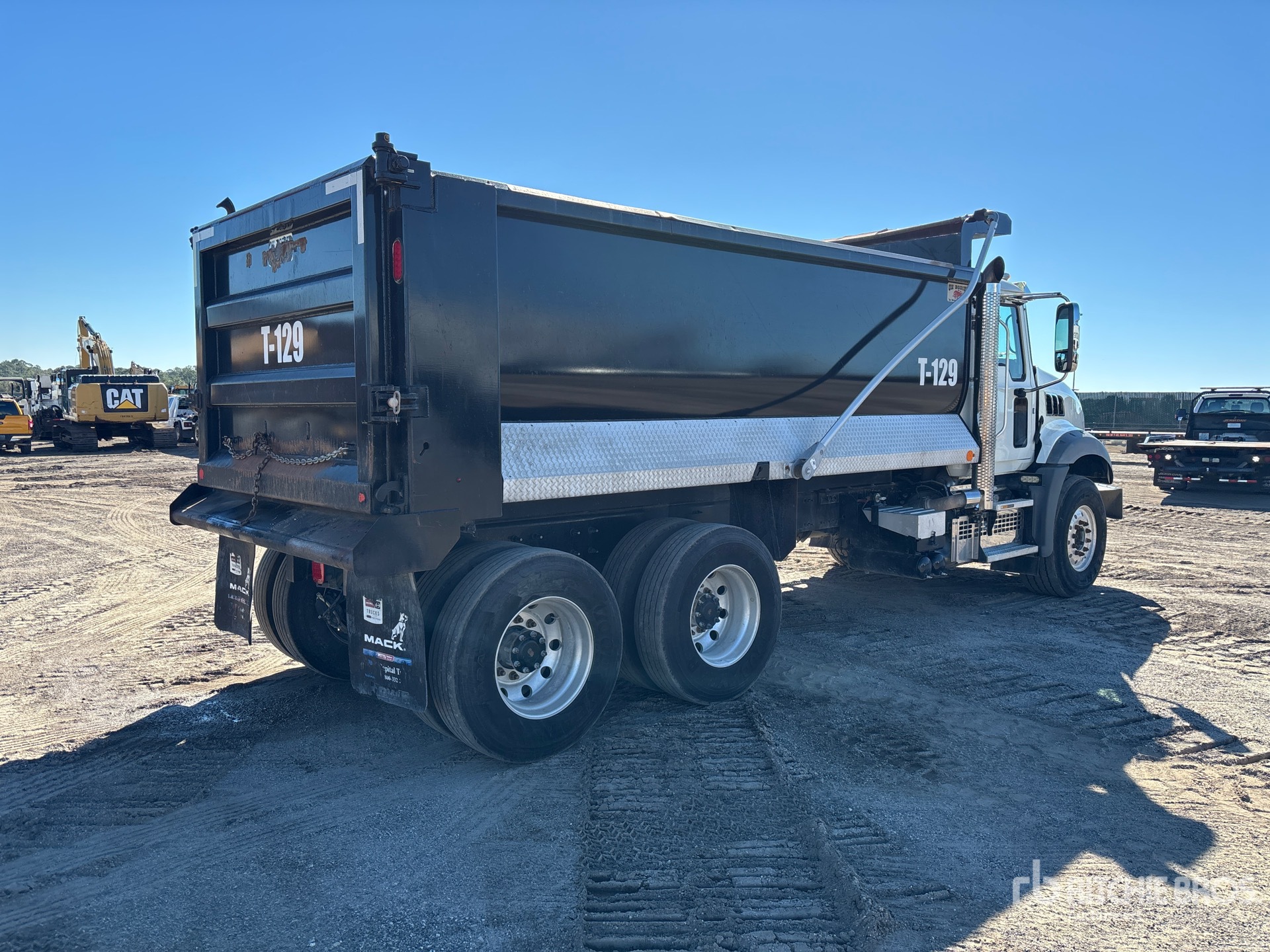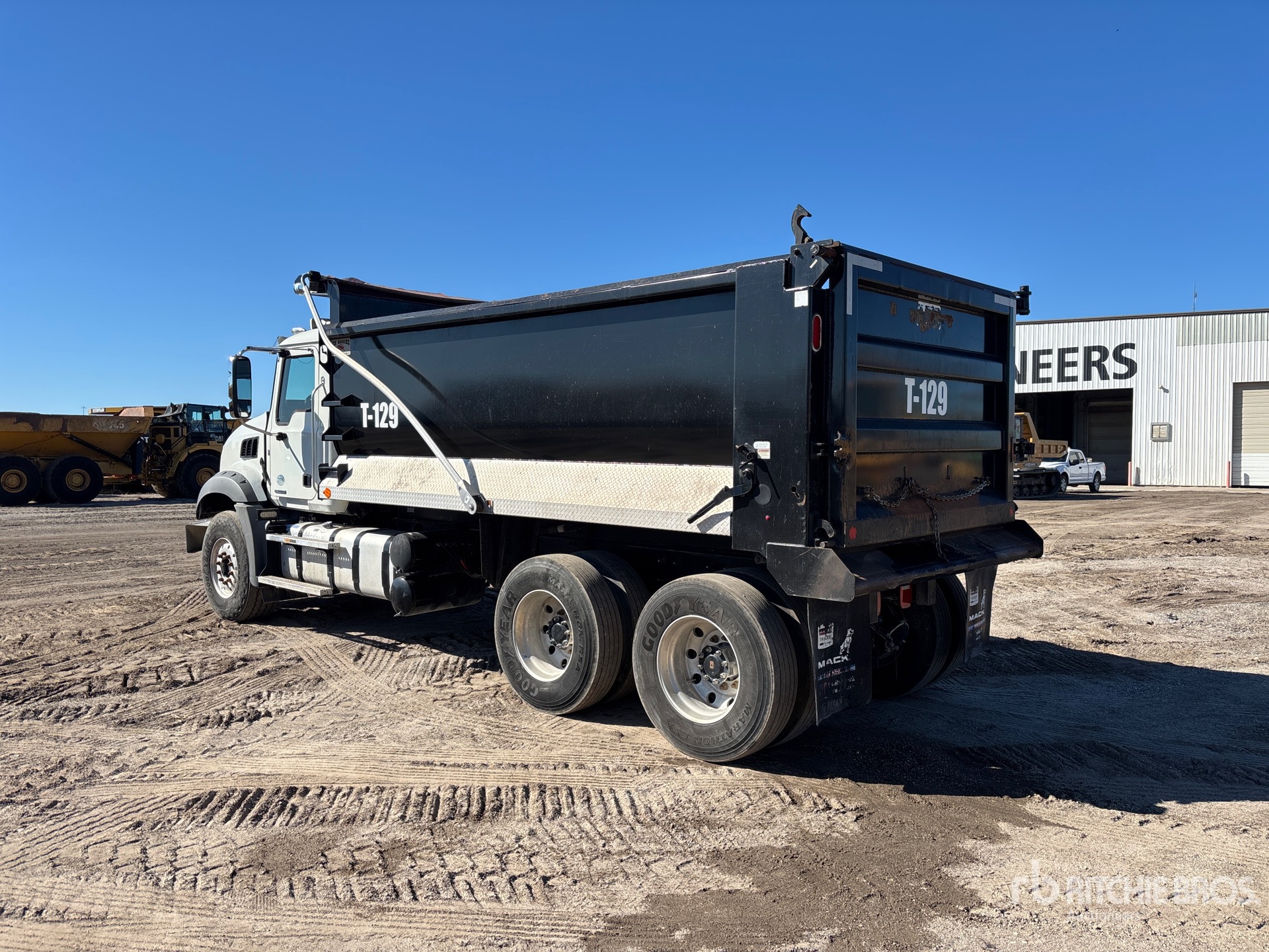 Located in Lane 63 Spot 5, Mack MP7 6 Cylinder 10.8 L Diesel 425 hp Engine, 2019 US EPA Label, Requires Diesel Exhaust Fluid, 10661 Engine hrs, Engine Brake, Mack mDrive Automated Transmission, Differential Lock, 20000 lb Front Axle, 46000 lb Rears, Aluminum Wheels, 425/65R22.5 Front Tires, 11R22.5 Rear Tires, Dual Steering Boxes, Camelback Spring Suspension, 210 in Wheelbase, PTO, OX Bodies 16 ft Long x 4 ft 4 in High Steel Body, 18 cyd, Capacity, Electric Roll Tarp, 2-Way Tailgate