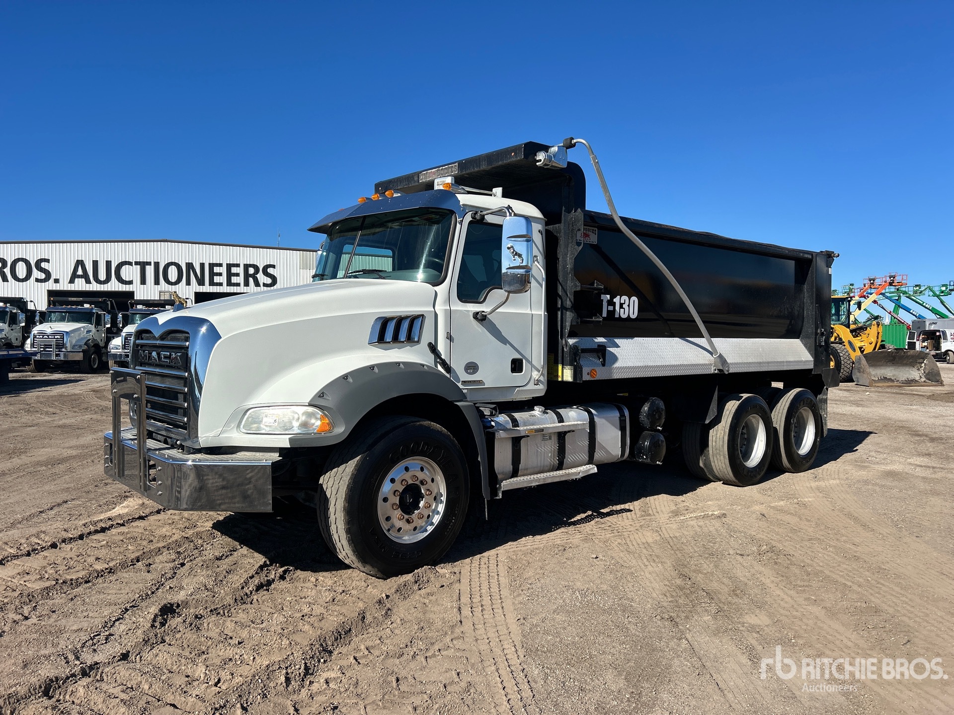 Located in Lane 62 Spot 9, Mack MP7 6 Cylinder 10.8 L Diesel 425 hp Engine, 2019 US EPA Label, Requires Diesel Exhaust Fluid, 10042.7 Engine hrs, Engine Brake, Mack mDrive Automatic Transmission, 20000 lb Front Axle, 46000 lb Rears, 66000 lb GVWR, Aluminum Wheels, 425/65R22.5 Front Tires, 11R22.5 Rear Tires, Dual Steering Boxes, Camelback Spring Suspension, 210 in Wheelbase, OX Bodies 16 ft Long x 4 ft 8 in High Steel Body, 18 cyd, Capacity, Round Bottom, Electric Roll Tarp, 2-Way Tailgate
