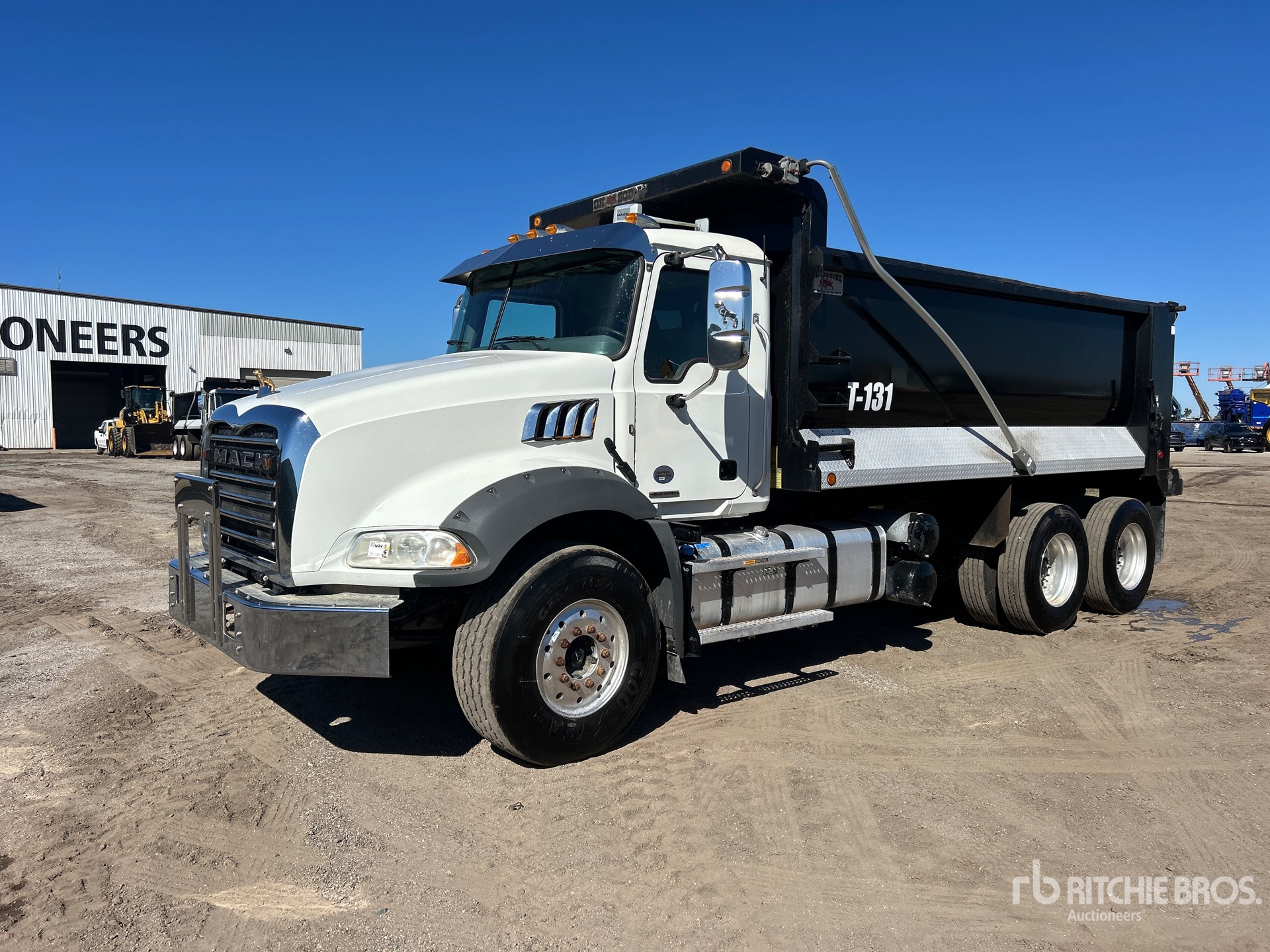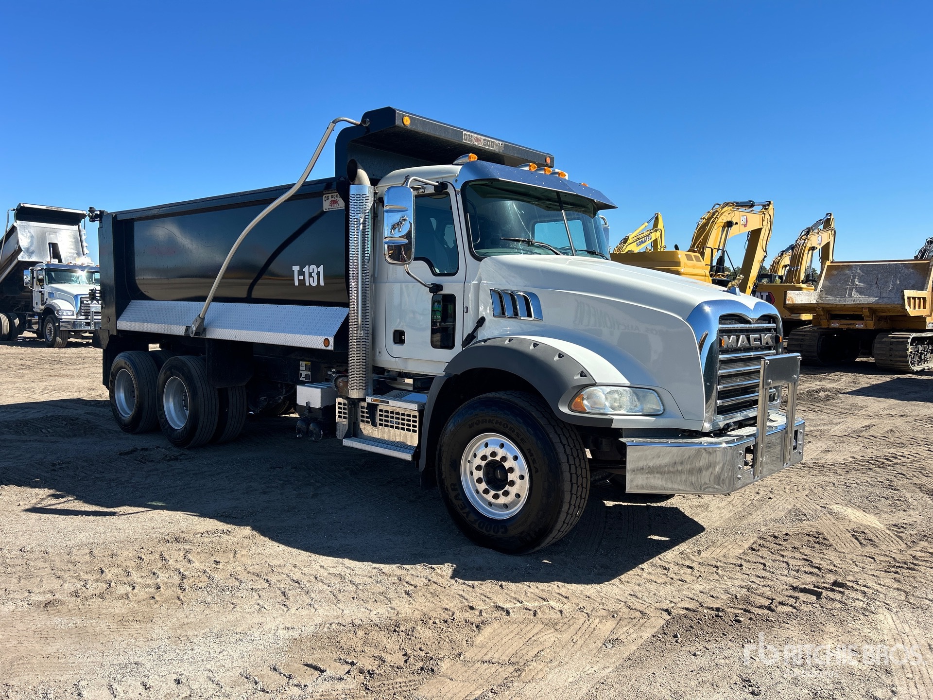 Located in Lane 62 Spot 10, Mack MP7 6 Cylinder 10.8 L Diesel 425 hp Engine, 2019 US EPA Label, Requires Diesel Exhaust Fluid, 9138 Engine hrs, Engine Brake, Mack mDrive Automated Transmission, Differential Lock, 20000 lb Front Axle, 46000 lb Rears, 66000:1 Axle Ratio, 66000 lb GVWR, Aluminum Wheels, 425/65R22.5 Front Tires, 11R22.5 Rear Tires, Dual Steering Boxes, Camelback Suspension, 210 in Wheelbase, PTO, Hydraulic System, OX Bodies 16 ft Long x 4 ft 8 in High Steel Body, 18 cyd, Capacity, Electric Roll Tarp, 2-Way Tailgate