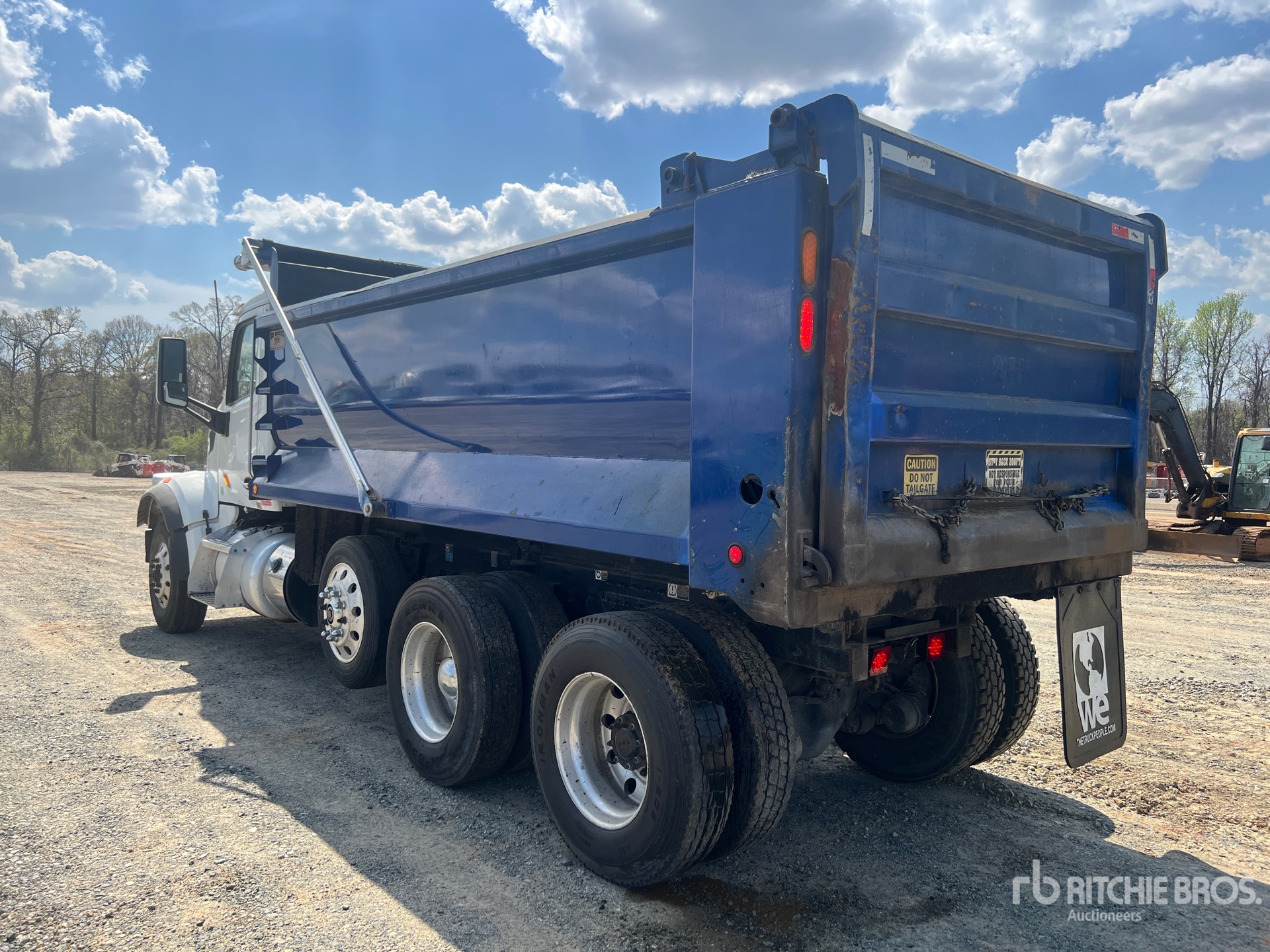 Paccar MX-13 6 Cylinder 12.8 L Diesel 455 hp Engine, 2019 US EPA Label, Requires Diesel Exhaust Fluid, 8883 Engine hrs, Engine Brake, Allison Automatic Transmission, 20000 lb Front Axle, 46000 lb Rears, 79500 lb GVWR, Air Ride Cab, Aluminum Wheels, 315/80R22.5 Front Tires, 11R22.5 Rear Tires, Steerable Air Lift Pusher Axle, Dual Steering Boxes, Double Frame, Hendrickson Haulmaax Suspension, 150 in Wheelbase, PTO, OX Bodies 16 ft Long x 48 ft High Steel Body, Round Bottom, Bed Vibrator, Electric Roll Tarp