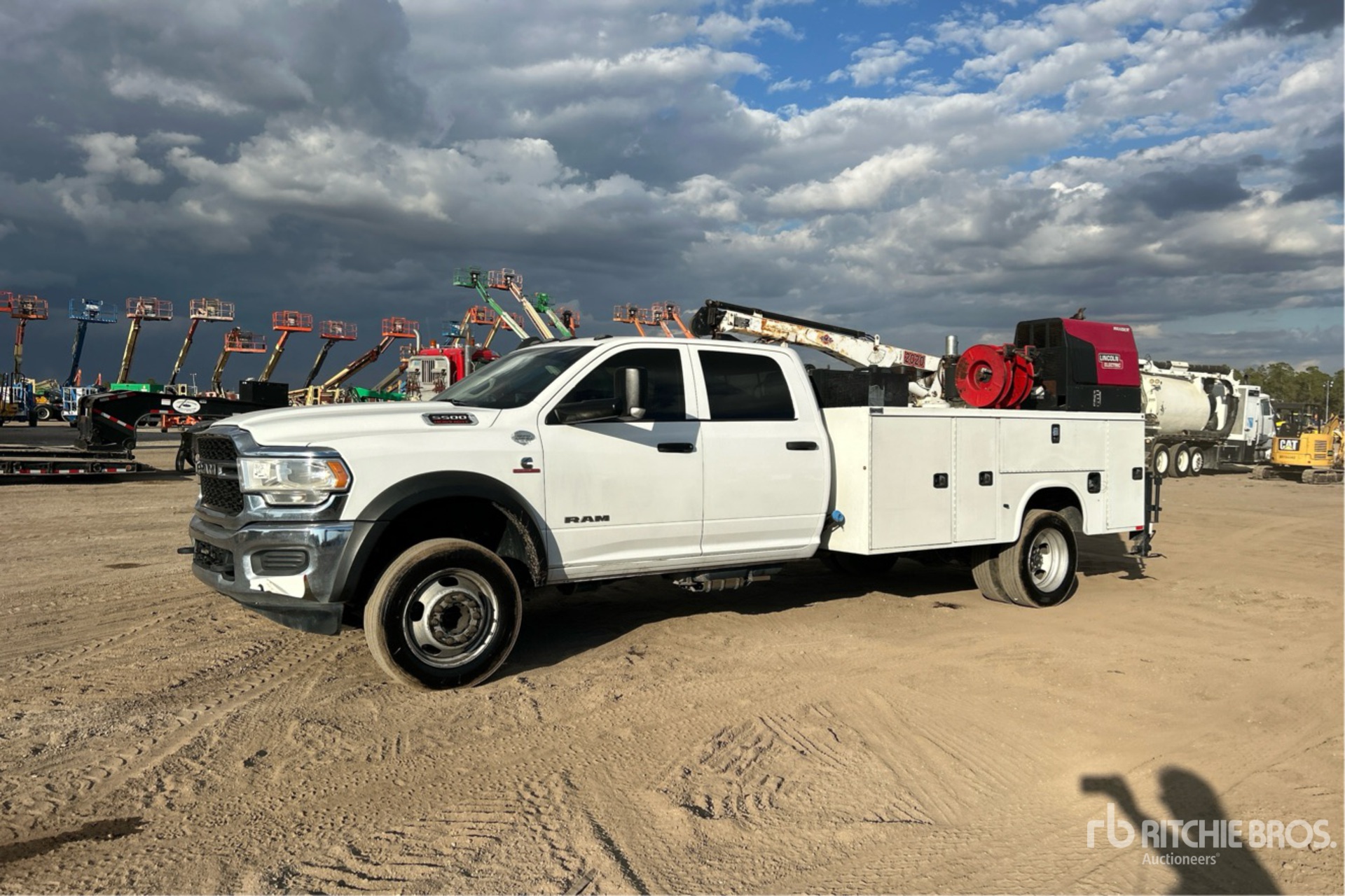 Located in Lane 93 Spot 7, Cummins B6.7 6 Cylinder 6.7 L Diesel 360 hp Engine, 2019 US EPA Label, CARB Compliant, Requires Diesel Exhaust Fluid, 9544 Engine hrs, Exhaust Brake, Automatic Transmission, 7250 lb Front Axle, 13500 lb Rears, 19500 lb GVWR, 225/70R19.5, Spring Suspension, 196 in Wheelbase, PTO, Knapheide 11 ft Body, Manual Stabilizers, 2009 IMT 2020 5000 lb 3 Section Electric Crane, Wireless Remote Control, Lincoln Generator Set, Hydraulic Air Compressor, Air Hose Reel, Lincoln 225 Ranger 10500 kW 225 A Gasoline Welder