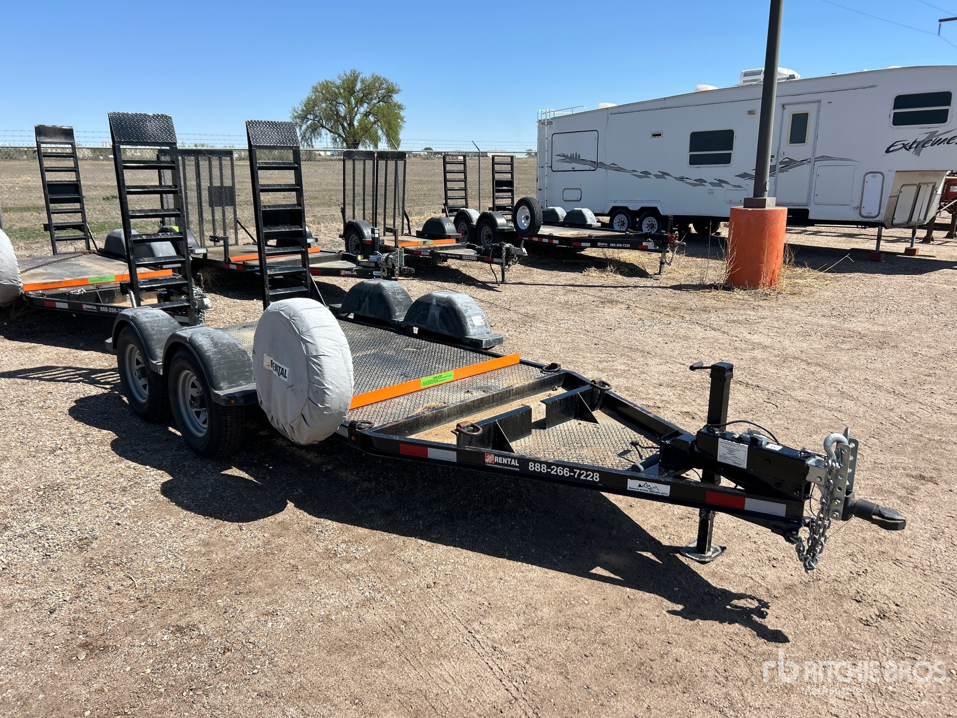 Ball Hitch, Torsion Axle, Surge Brakes, 10 ft Main Deck, 60 in Usable Deck Width, 64 in Overall Deck Width, Manual Ramps, Steel Decking, 225/75R15 Tires, 7000 lb GVWR