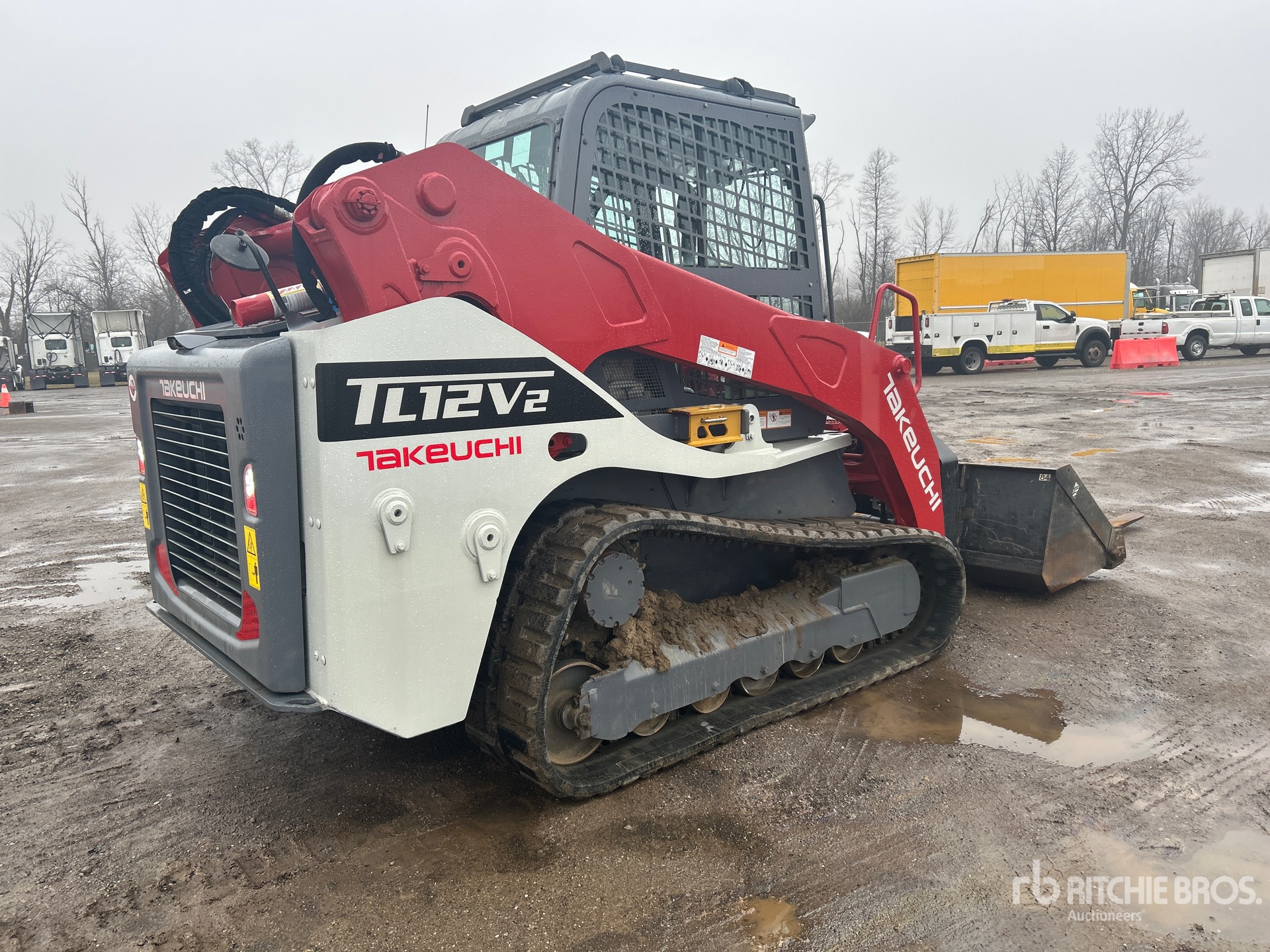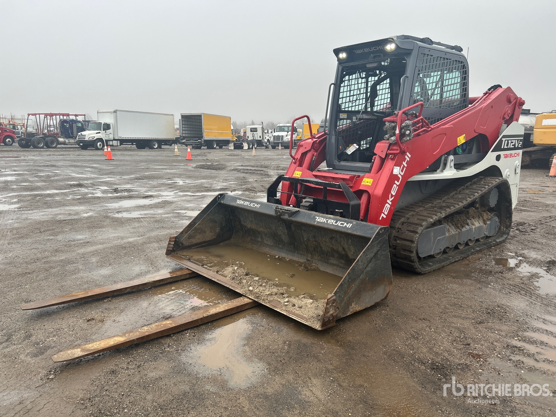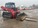 Enclosed Cab, Air Conditioner, Joystick Steering, Rear View Camera, Requires Diesel Exhaust Fluid, 17.5 in Track Belts, 14 Pin Electric Kit, Hydraulic Coupler, 84 in Bucket, Forks