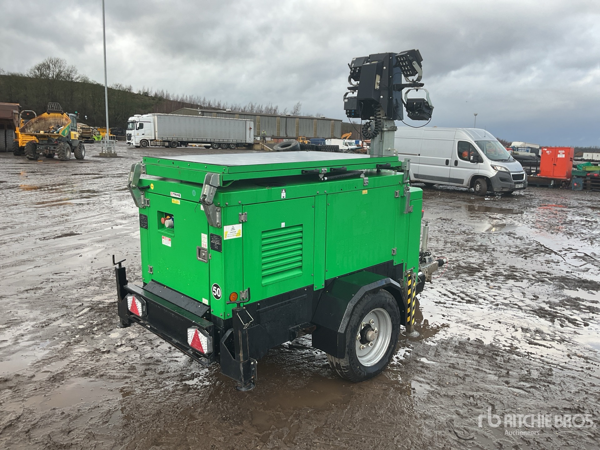 Kubota 2 Cylinder Diesel Engine, 4 Lamps, LED Lighting, Solar Powered, Hydraulic Raise and Lower, Lunette Ring Carrier Trailer, Surge Brakes