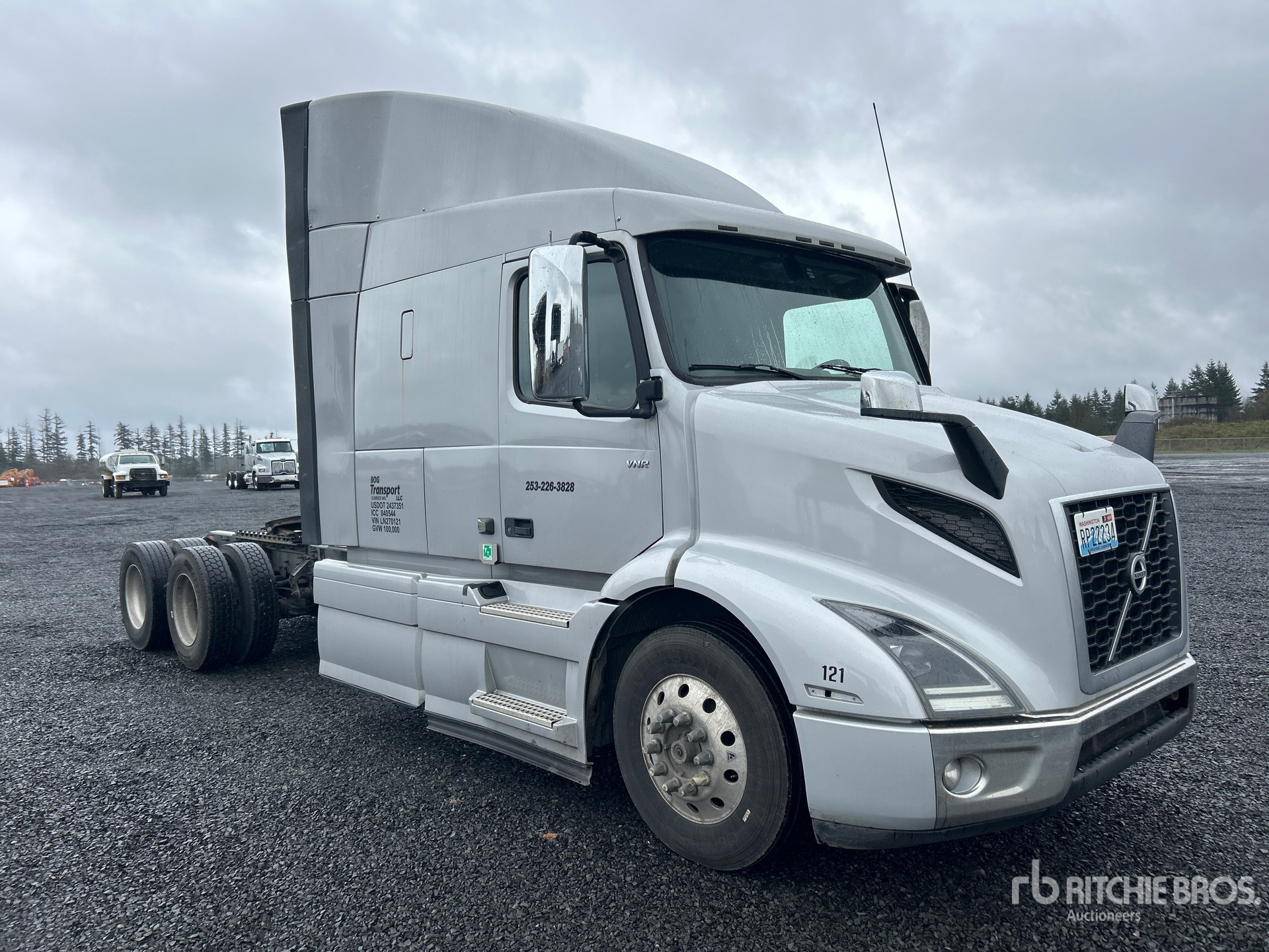 Volvo D13M 500 hp Engine, 2019 US EPA Label, 12664 Engine hrs, Volvo ATO2612F 12-Speed Automated Transmission, 13200 lb Front Axle, 38000 lb Rears, 51200 lb GVWR, Engine Brake, High Rise Sleeper Cab, Bunk Beds, 246 in Wheelbase, Air Suspension, Aluminum Wheels, 295/75R22.5, Air Sliding 5th Wheel, Dual Fuel Tanks