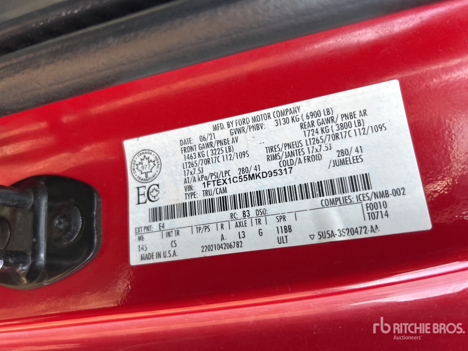5.0 L V8 Gasoline Engine, 2021 US EPA Label, CARB Compliant, Automatic Transmission, Air Conditioner, Power Windows, Drop-In Bed Liner, 6900 lb GVWR, 265/70R17 Tires, 6 ft 4 in Bed