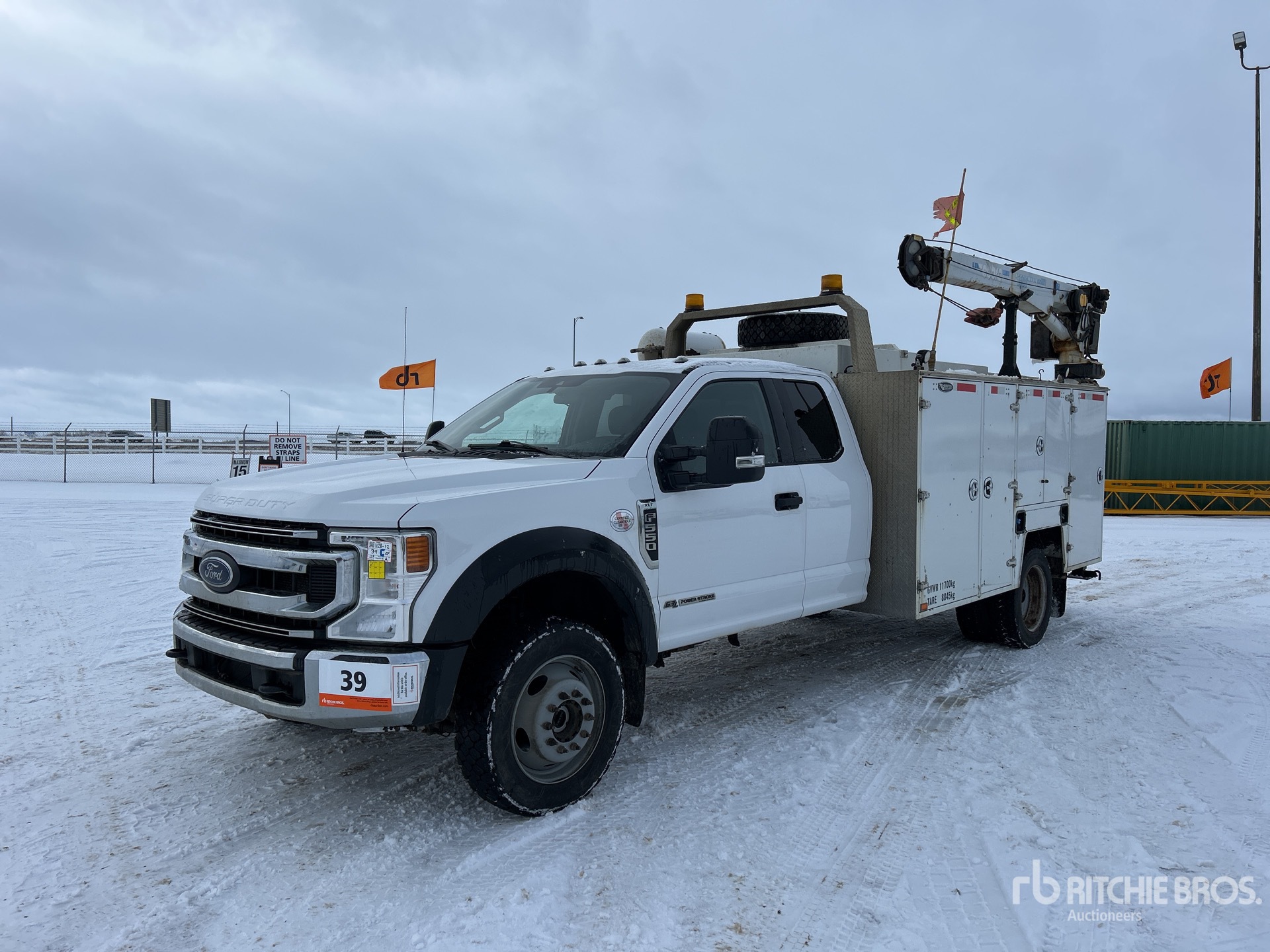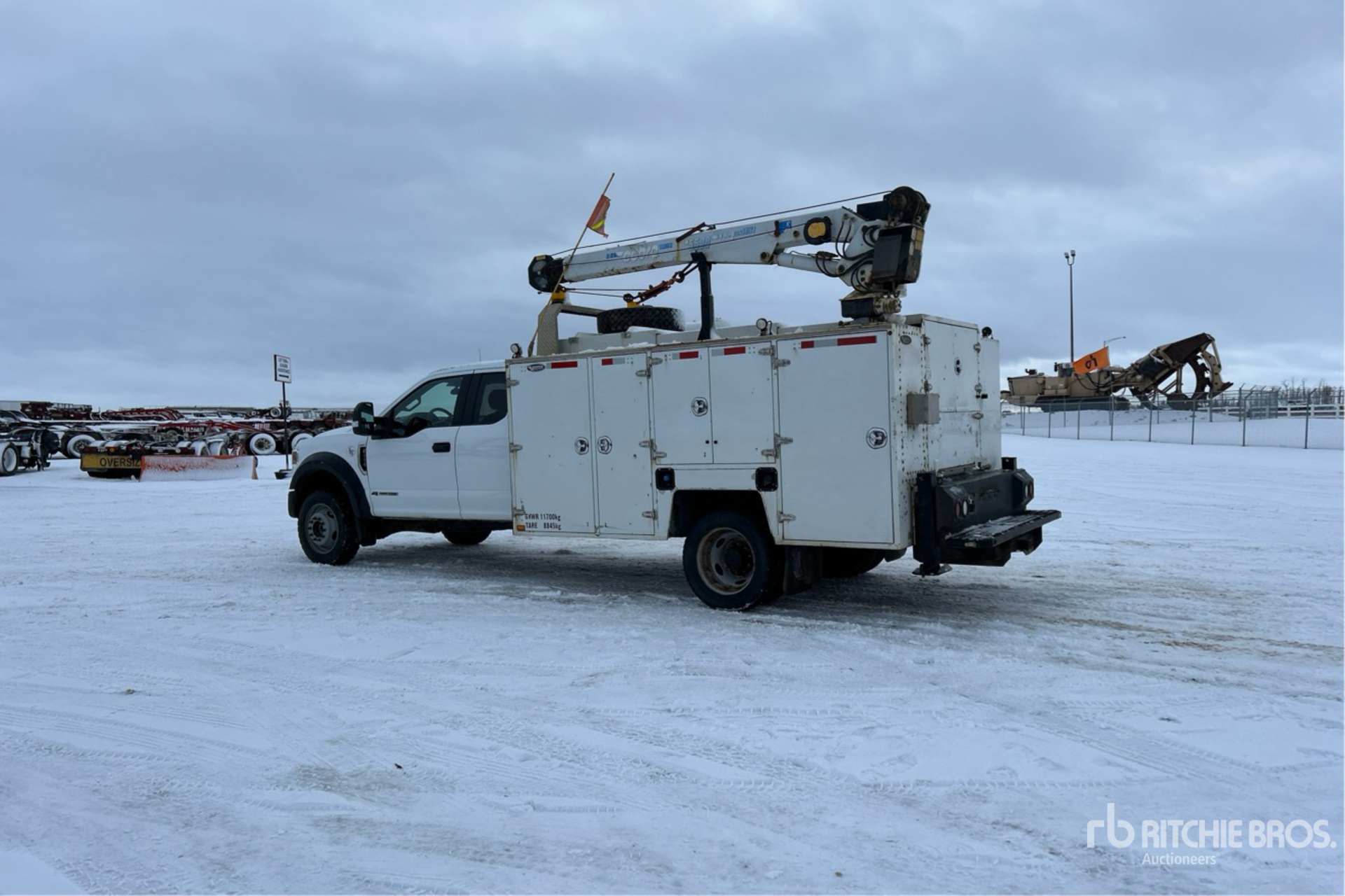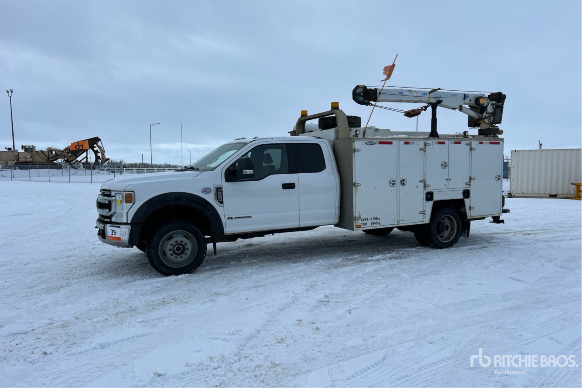 V8 6.7 L Diesel Engine, 2021 US EPA Label, 4975 Engine hrs, Automatic Transmission, 7000 lb Front Axle, 14706 lb Rears, 19500.0 lb GVWR, 225/70R19.5, Spring Suspension, 192 in Wheelbase, Brutus 11 ft Body, Manual Stabilizers, Cobra 5500 3 Section Hydraulic Crane, Wireless Remote Control, Miller Trailblazer 325 Welder