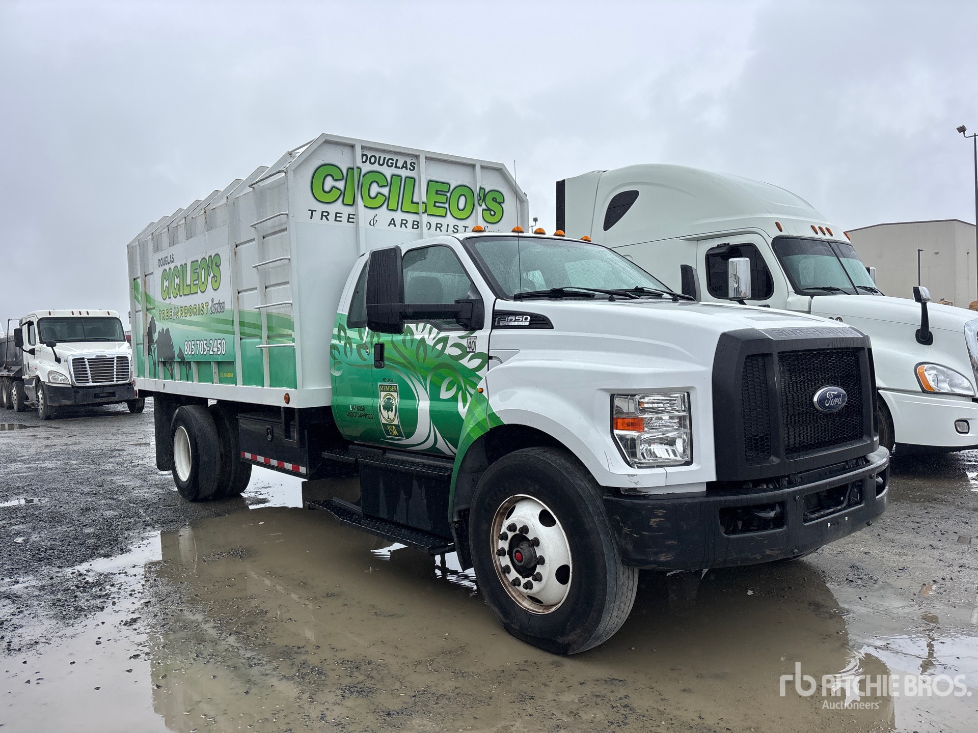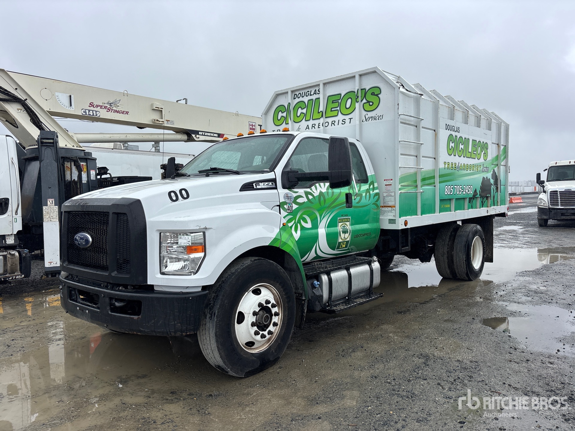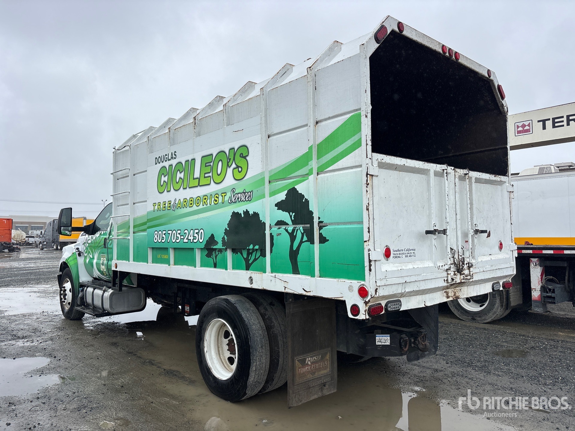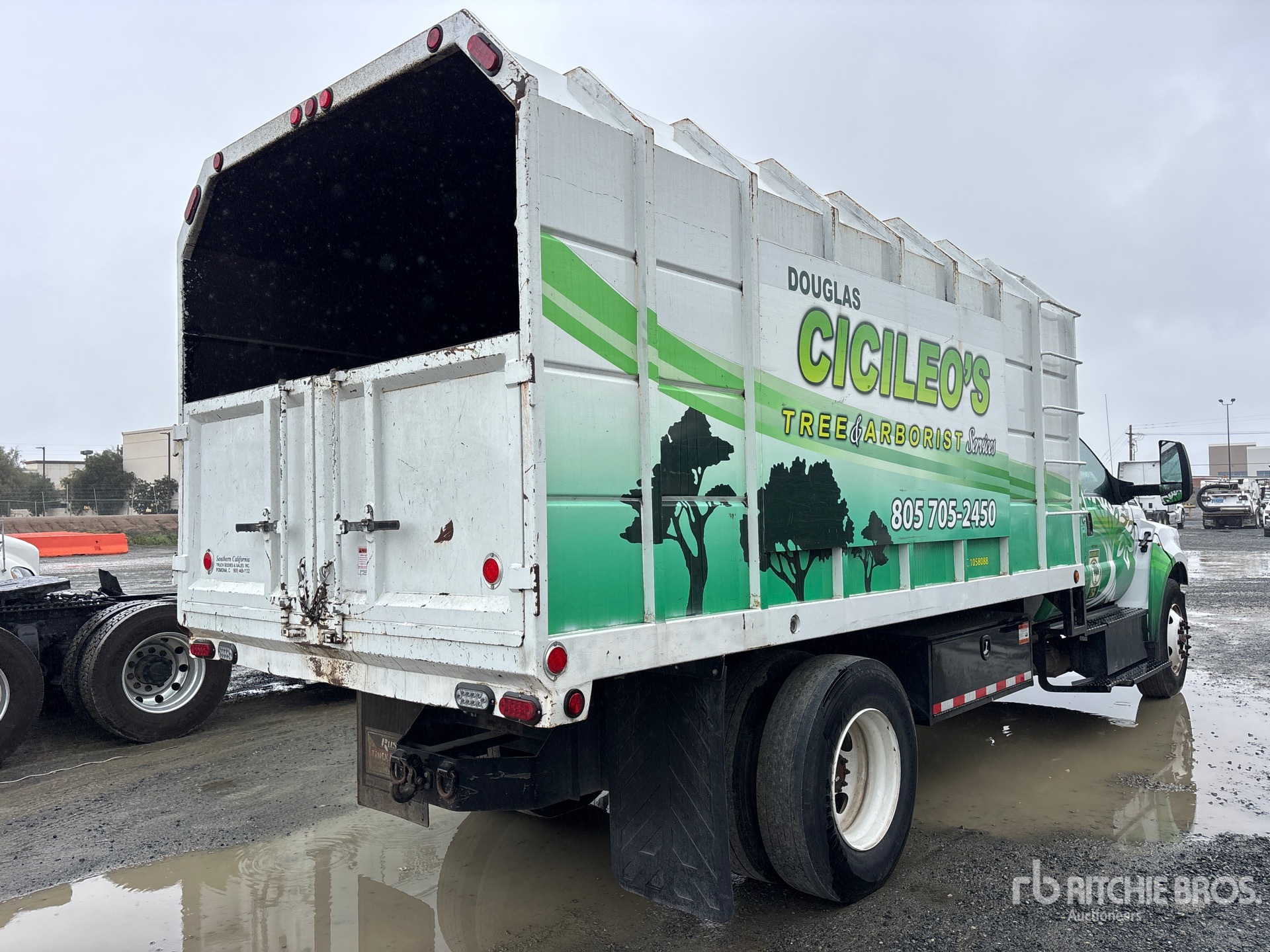 Located in Lane 10 Spot 5, Ford V8 6.7 L Diesel Engine, 2020 US EPA Label, Requires Diesel Exhaust Fluid, Automatic Transmission, 17500 lb Rears, 25999 lb GVWR, 11R22.5 Front Tires, 11R22.5 Rear Tires, Spring Suspension, Southern California Truck Bodies 16 ft Long x 5 ft 6 in High Steel Body, Split Swing Tailgate, Ringfeder