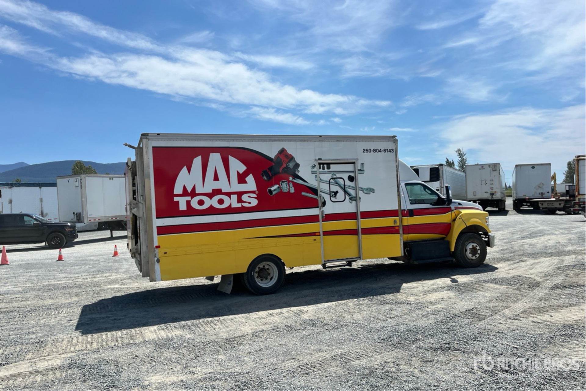 V8 Diesel Engine, 2020 US EPA Label, CARB Compliant, Requires Diesel Exhaust Fluid, Automatic Transmission, 8500 lb Front Axle, 18700 lb Rears, 27200 lb GVWR, 265/70R19.5, Spring Suspension, 216 in Wheelbase, US Truck Body 18 ft x 102 in Wide x 84 in High Body, Curbside Door, Walk-Up Ramp