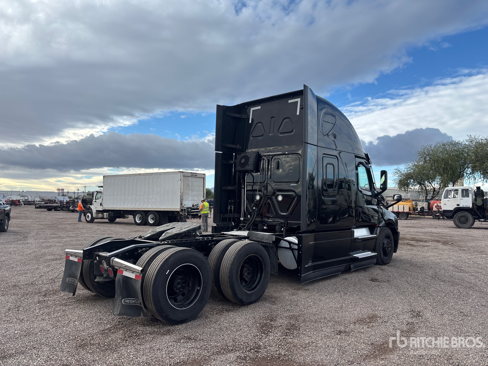 Located in Lane 55 Spot 59, Detroit DD15 505 hp Engine, 2020 US EPA Label, 14195 Engine hrs, Detroit DT12-1650-OHE 12-Speed Automated Transmission, 12350 lb Front Axle, 40000 lb Rears, Engine Brake, 72 in High Rise Sleeper Cab, Bunk Beds, 235 in Wheelbase, Air Suspension, 295/75R22.5, Air Sliding 5th Wheel, Dual Fuel Tanks