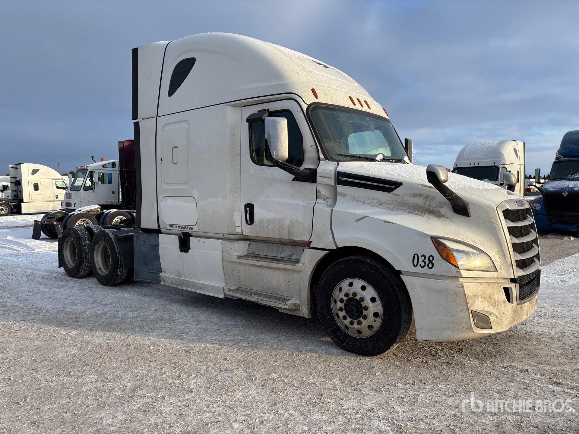 Detroit DD15 Engine, 14907 Engine hrs, Detroit DT12-1650-OH1 12-Speed Automated Transmission, 12350 lb Front Axle, 40000 lb Rears, 52350 lb GVWR, Engine Brake, 72 in High Rise Sleeper Cab, Bunk Beds, 229 in Wheelbase, Air Suspension, Aluminum Outer Wheels, 295/75R22.5, Air Sliding 5th Wheel, Dual Fuel Tanks