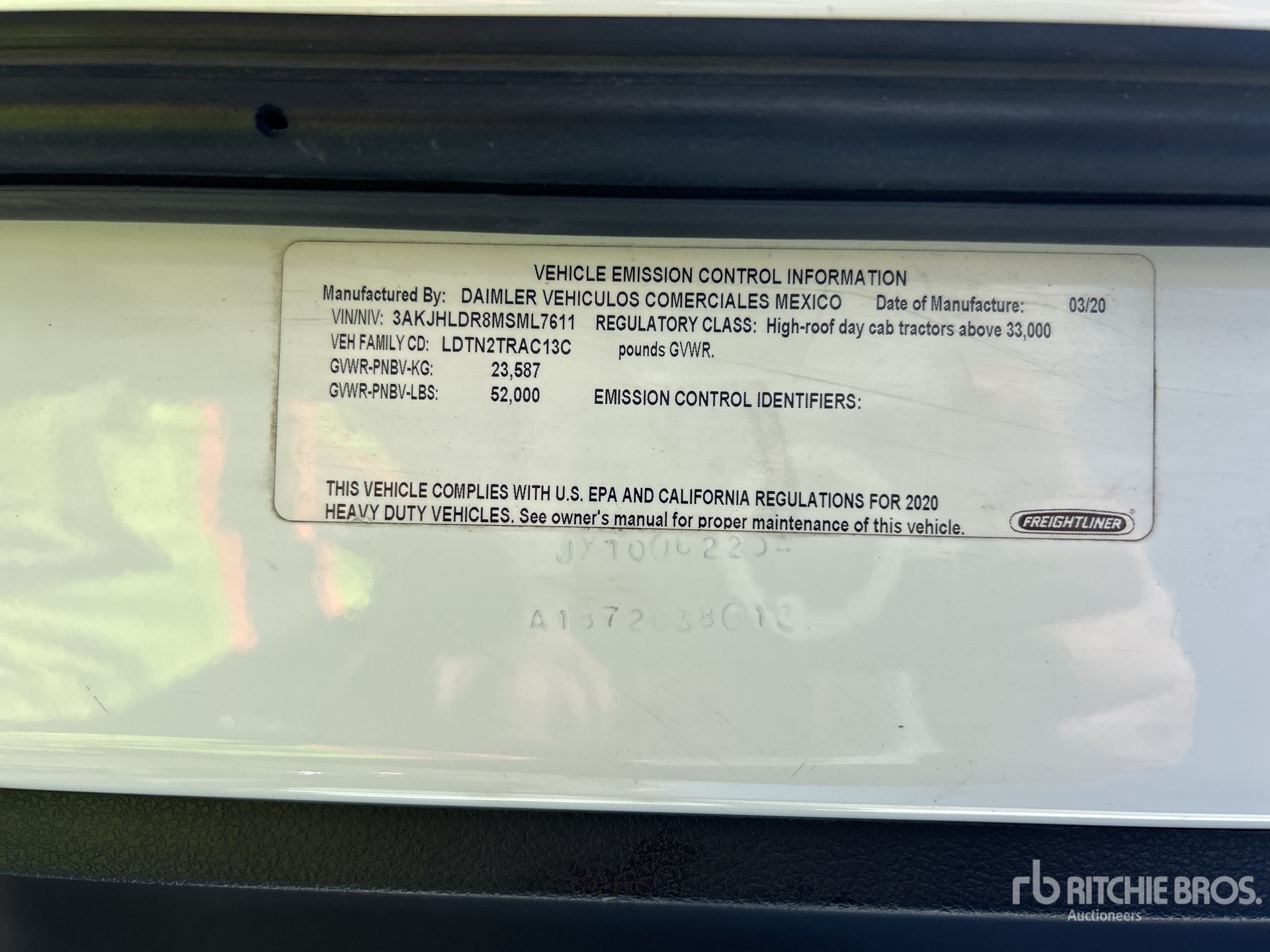 Detroit DD15 505 hp Engine, 2020 US EPA Label, 9308 Engine hrs, Detroit DT12-1650-OH1 12-Speed Automated Transmission, 12000 lb Front Axle, 40000 lb Rears, 52000 lb GVWR, Engine Brake, 200 in Wheelbase, Air Suspension, Aluminum Wheels, 11R22.5, Air Sliding 5th Wheel, Dual Fuel Tanks, Professionally-Maintained-Fleet-Vehicle-PAG