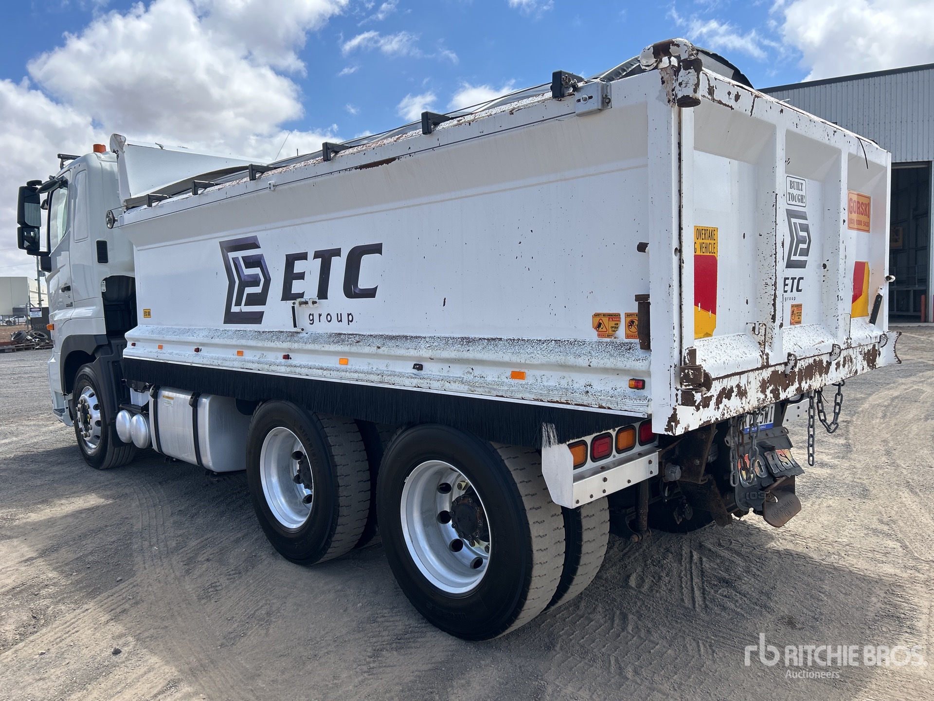 E13C 6 Cylinder Diesel 480 hp Engine, Requires AdBlue, 6441 Engine hrs, Exhaust Brake, Automatic Transmission, 295/80R22.5 Front Tires, 11R22.5 Rear Tires, Air Ride Suspension, 4300 mm Wheelbase, PTO, Hydraulic System, Gorski 4900 mm Long x 1100 mm High Steel Body, Electric Roll Tarp, 2-Way Tailgate, Rear Hydraulics, Ringfeder, GVM 27.9 t