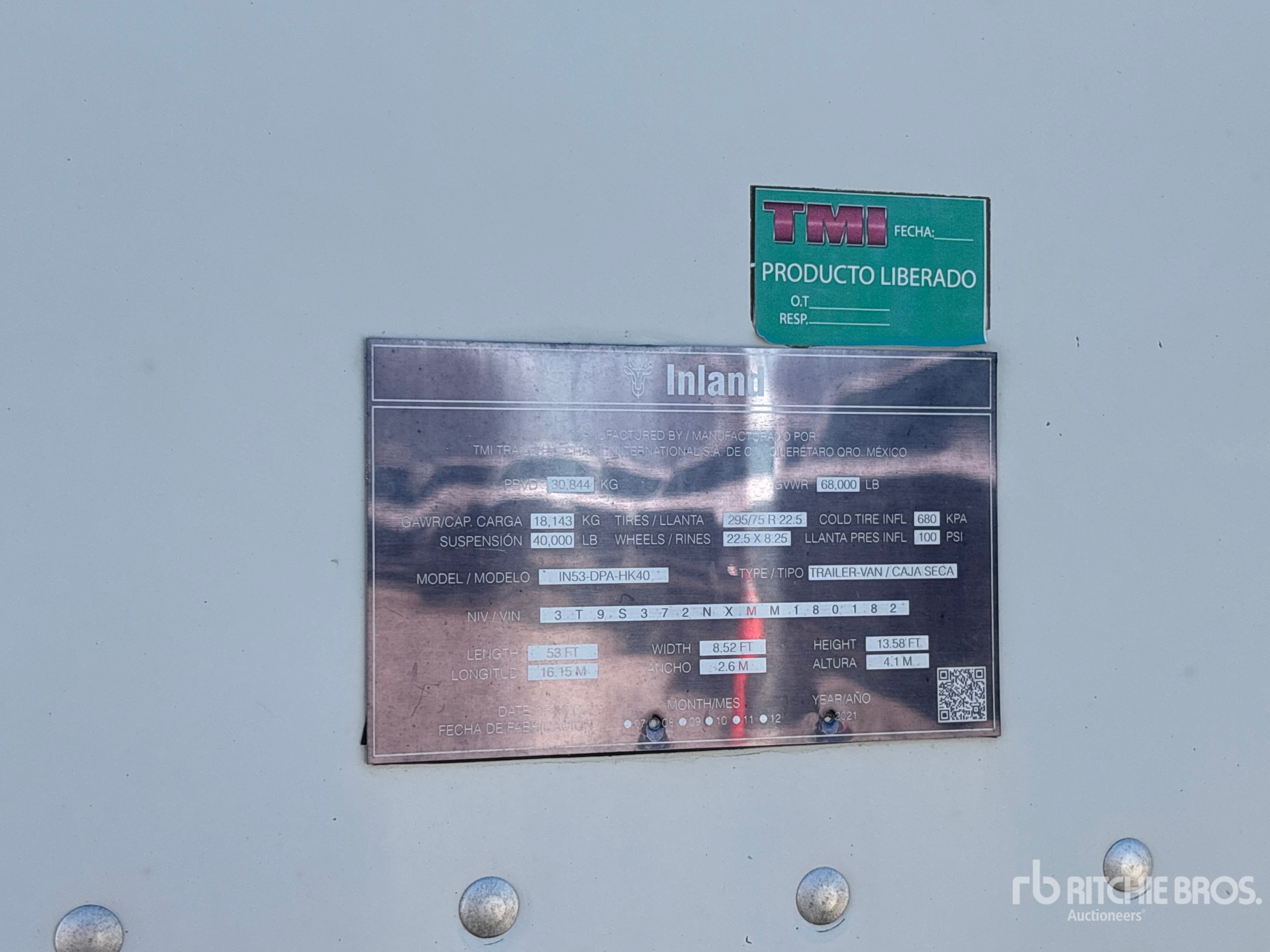 Air Ride Sliding Suspension, Side Skirts, Hardwood Floor, Swing Door, 295/75R22.5 Tires 68000 lb GVWR