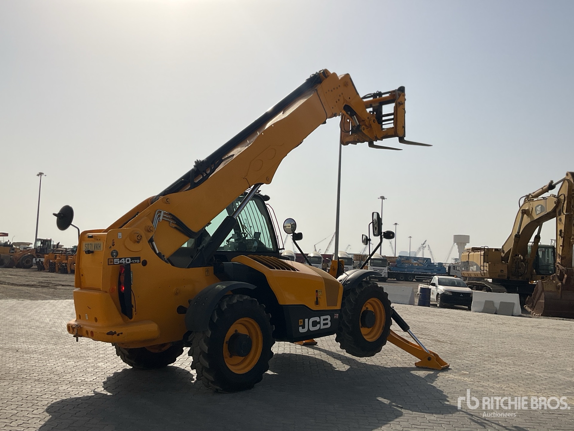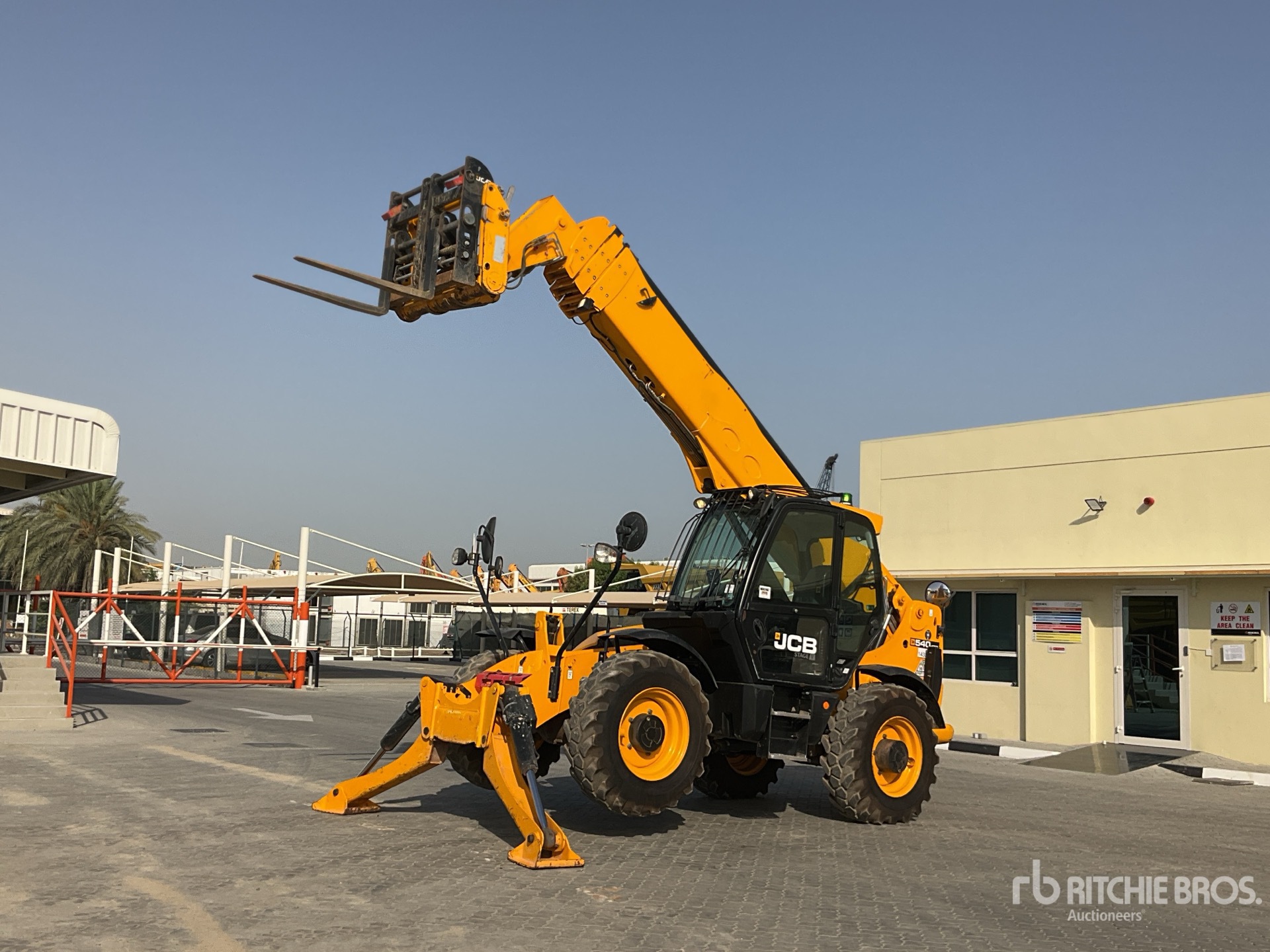 Enclosed Cab, Air Conditioner, Rear View Camera, 16.72 m Max Lift Height, 4000 kg Max Lift Capacity, 1000 mm Forks, Fork Positioner, Manual Coupler, Outriggers, Frame Leveling, Auxiliary Hydraulic Plumbing