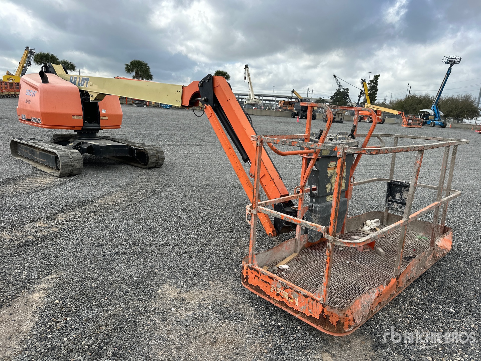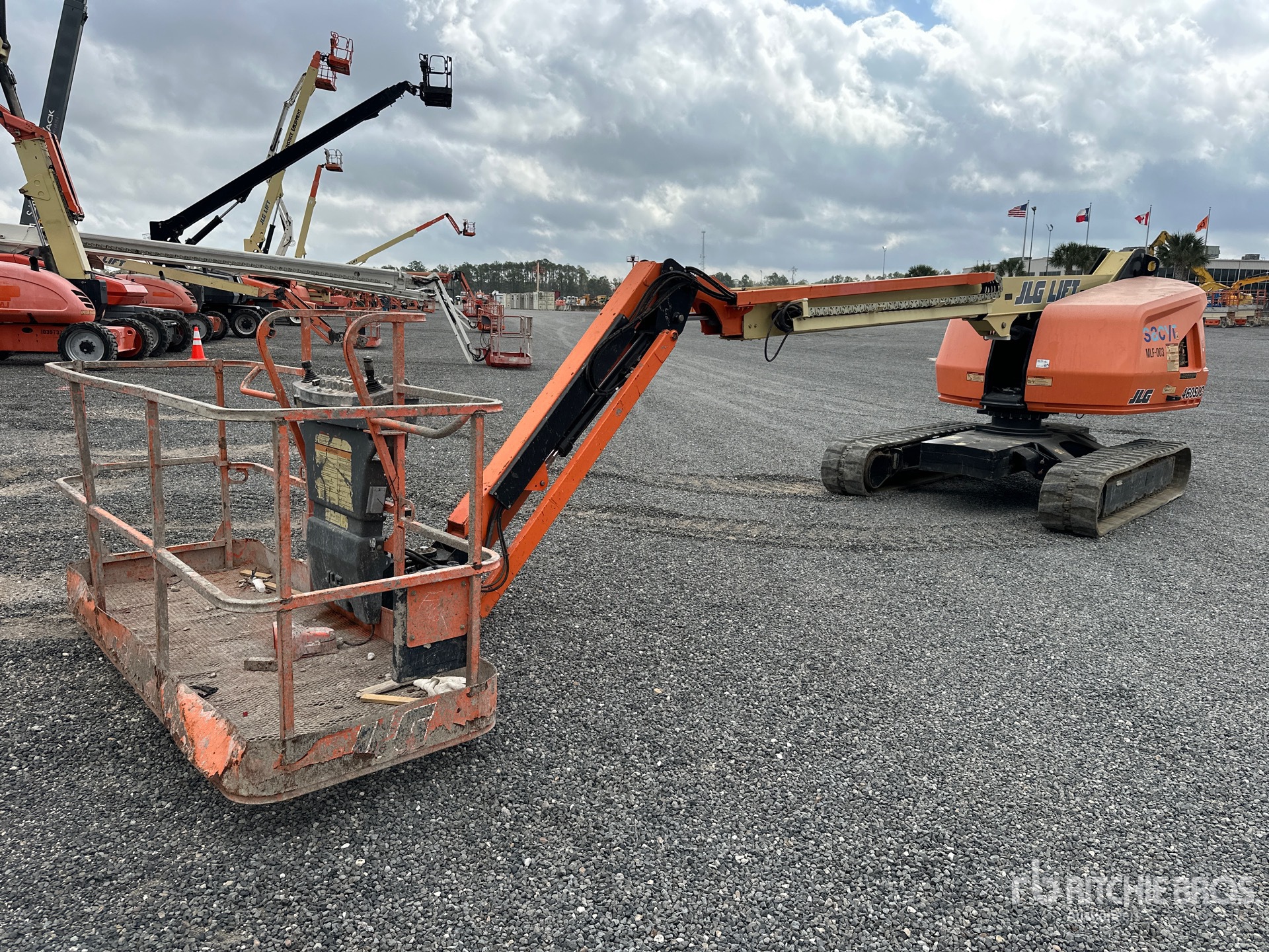 Located in Lane 69 Spot 27, 45 ft Max Platform Height, 600 lb Max Weight Capacity, Jib, Power to Platform, 2018 US EPA Label, Deutz 4 Cylinder 49 hp 2.9 L Diesel Engine, 16 in Rubber Tracks