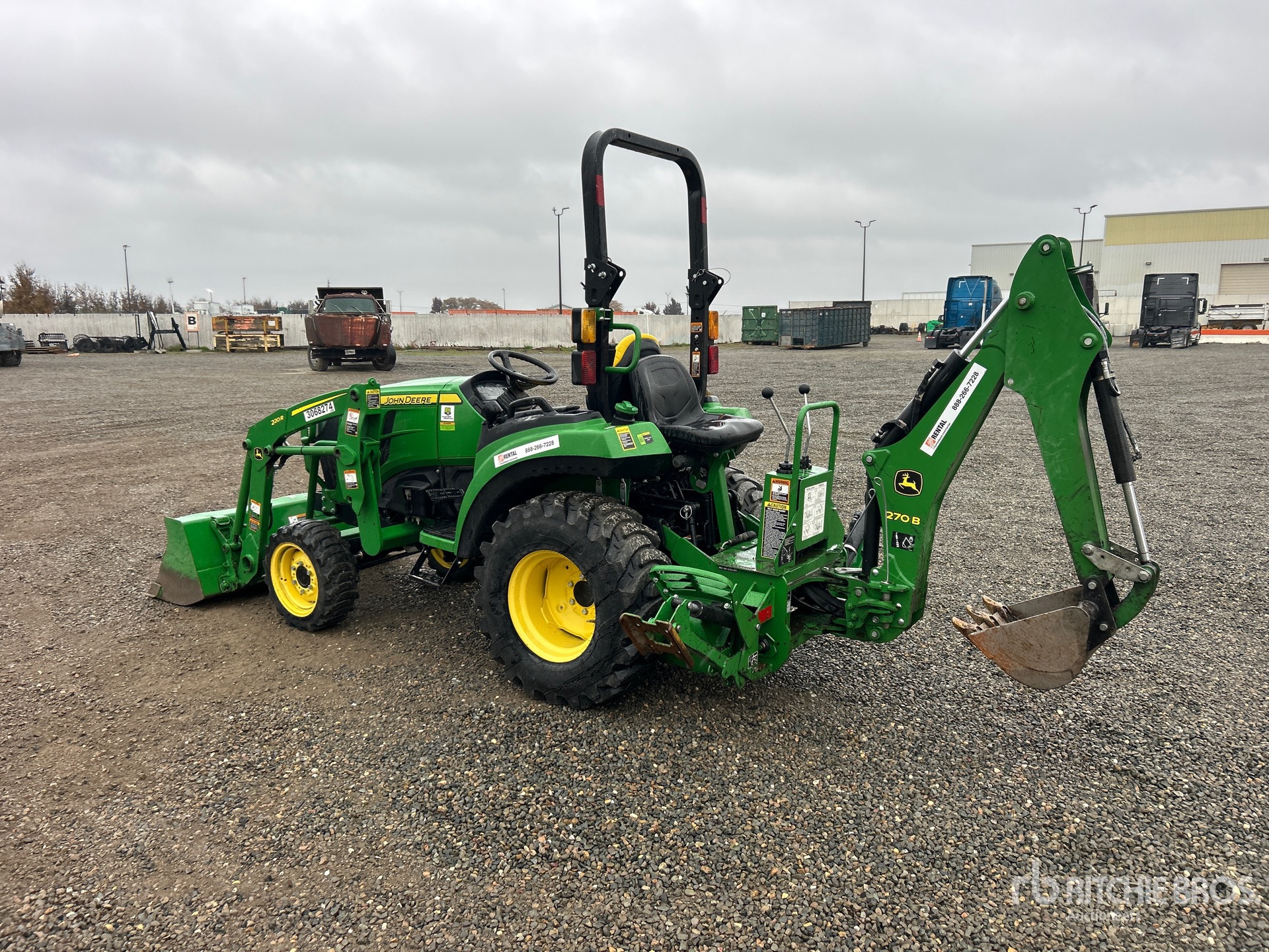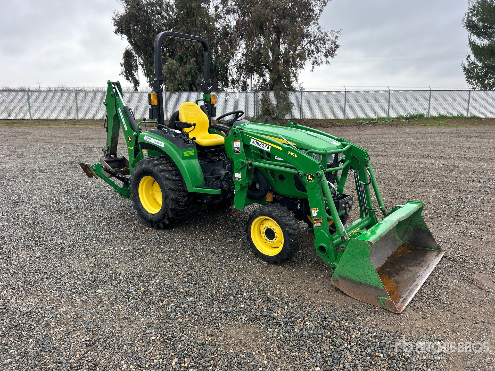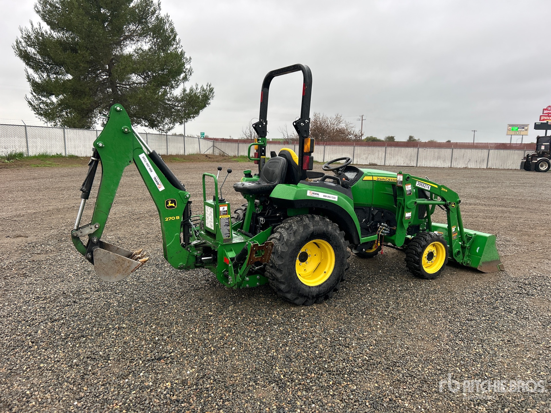 Differential Lock, Hydrostatic Drive, 2020 US EPA Label, John Deere 220R Loader w/Joystick, Quick Coupler, John Deere 58 in Bucket, 540 PTO, 3-Point Hitch, John Deere 270B Backhoe Attachment With 16 in Bucket, 29X8.5 Front Tires, 14-17.5 Rear Tires