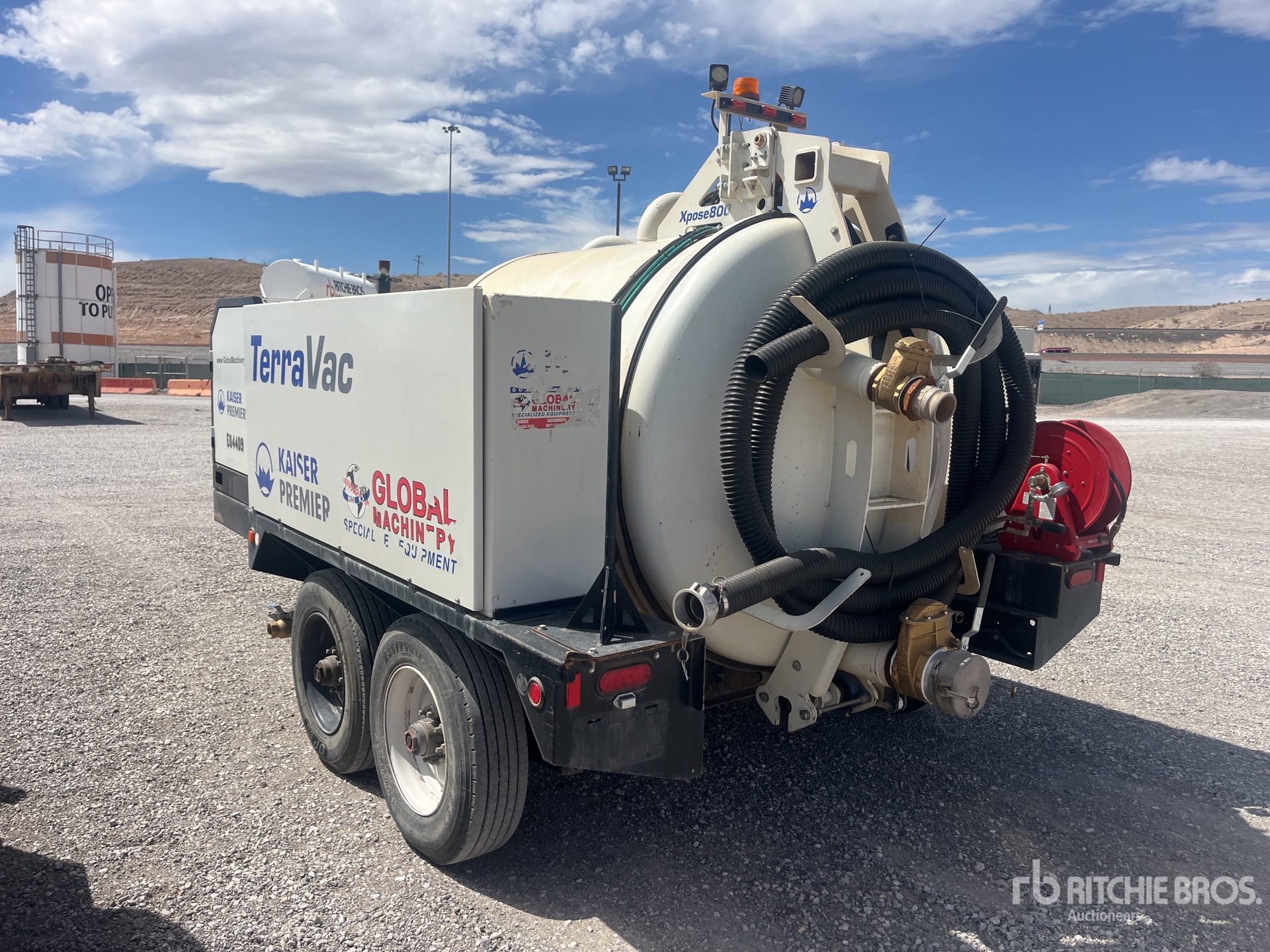 Lunette Ring Hitch, Electric Brakes, TeraVac Xpose800 Steel Debris Tank, Fresh Water Tank, Hydraulic Lift Tailgate, Hydraulic Tailgate Locks, 3.75 in Suction Hose, Engine Driven Pump, Blower, 235/75R17.5 Tires, 18500 lb GVWR, 3 Cylinder Diesel Engine