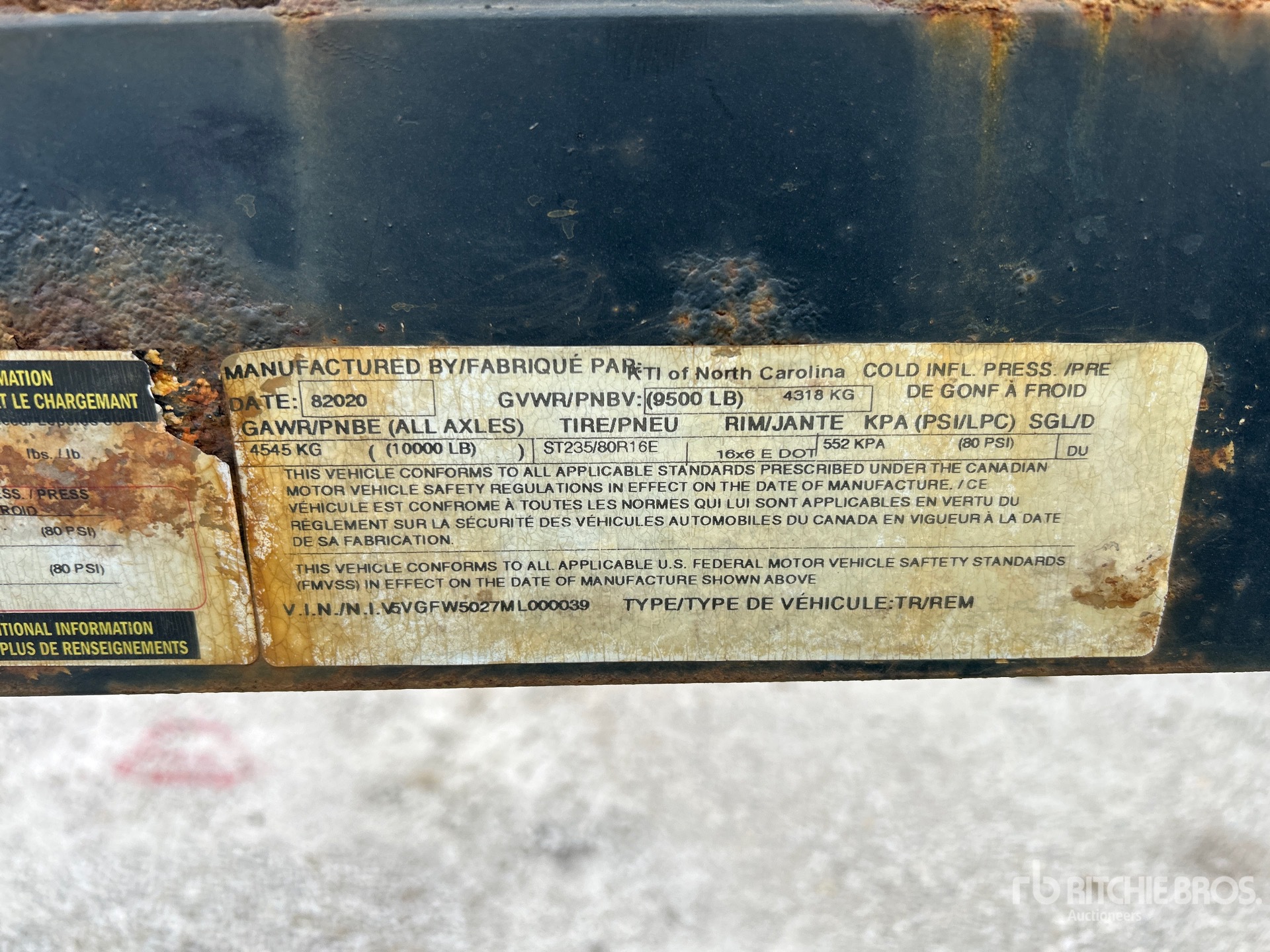 Located in Lane 24, Spring Suspension, Soft Ties, Aluminum Wheels, 235/80R16 Tires, 9500 lb GVWR