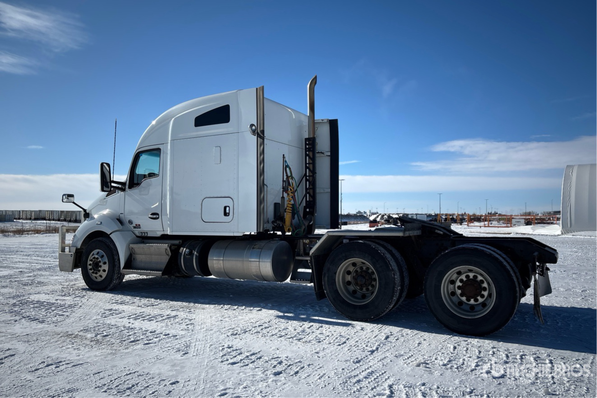 Located in Lane 33 Spot 42, Paccar MX-13 510 hp Engine, Engine Coolant Heater, 2020 US EPA Label, 13020 Engine hrs, Eaton Fuller RTLO-1891 18-Speed Manual, 13200 lb Front Axle, 46000 lb Rears, 59200 lb GVWR, Engine Brake, Double Differential Locks, 62 in Mid Roof Sleeper Cab, 236 in Wheelbase, Air Suspension, Aluminum Wheels, 11R22.5, Air Sliding 5th Wheel, Dual Fuel Tanks, PTO