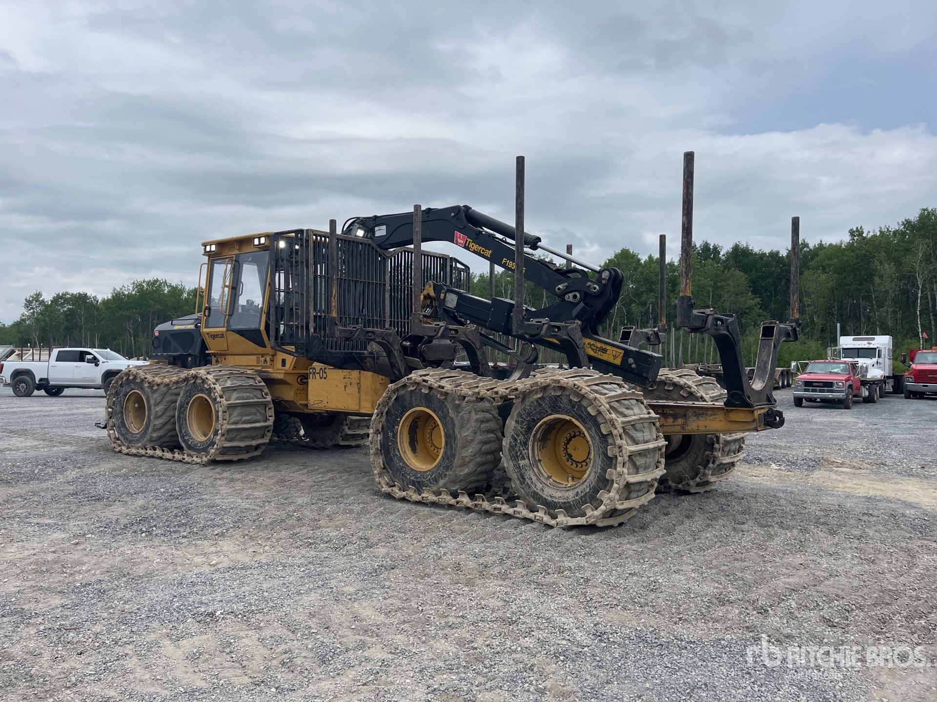 Air Conditioner, Joystick Steering, Air Ride Seat, Screens, Fire Suppression System, Two-Position Station, Rear-View Camera, 2021 US EPA Label, Requires Diesel Exhaust Fluid, Webasto Engine Coolant Heater, Tigercat F195T85 Telescopic Boom, Unknown. Log Grapple, 780/50-28.5 Tires w/2 Pairs of Chains, Track Chains, Floatation Tires