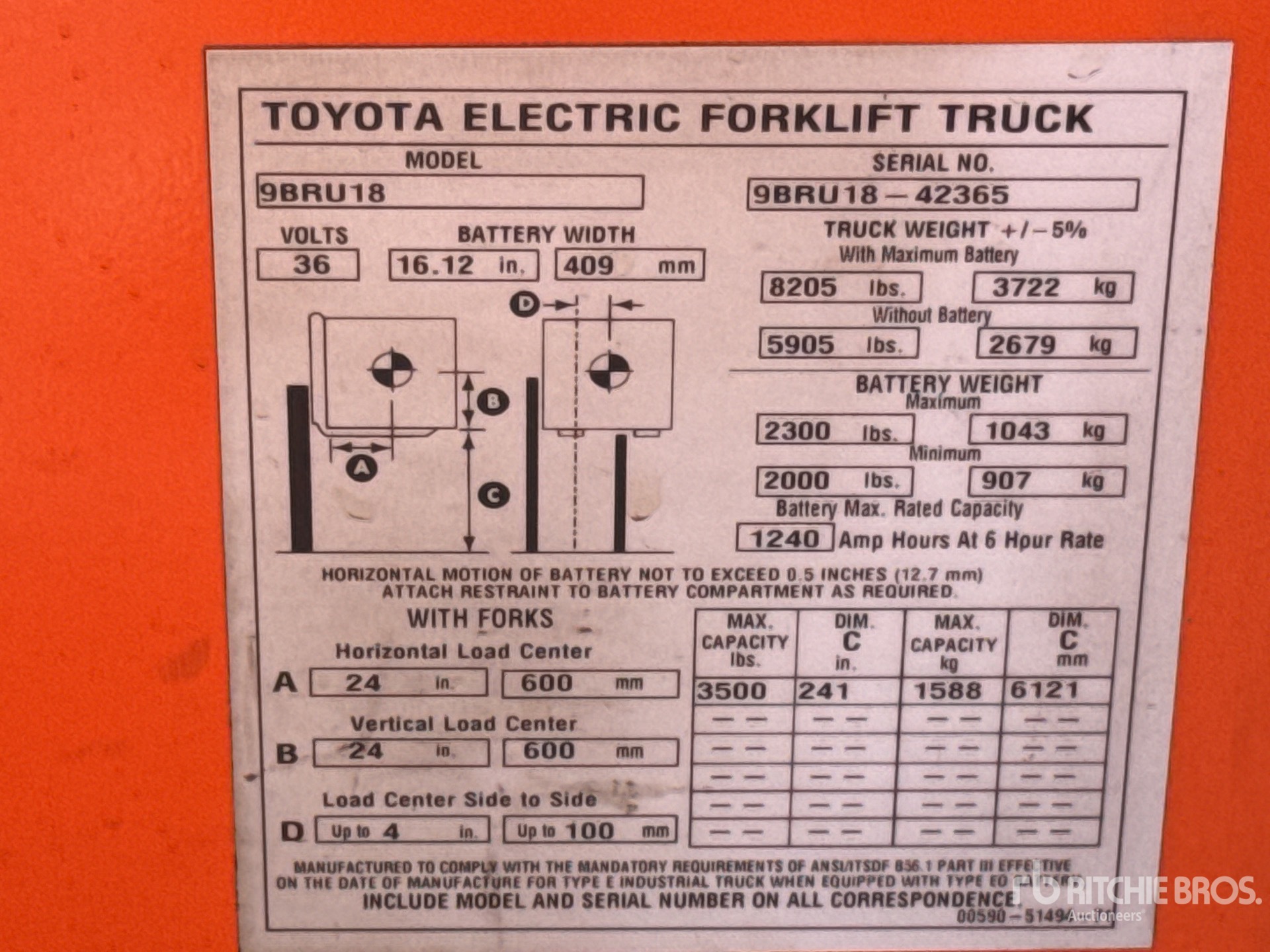 The detailed equipment information is limited in scope, and Ritchie Bros. Auctioneers has not inspected any aspects or components of the equipment other than those expressly set forth herein. Unless expressly stated, we make no representations or warranties, express or implied, concerning the equipment or its components, including without limitation any representations or warranties concerning functionality, conformity or compliance with any safety standard or requirement of any applicable authority or regulatory body, fitness for any particular purpose, or merchantability. You are strongly advised to perform your own detailed inspection of the equipment prior to bidding.