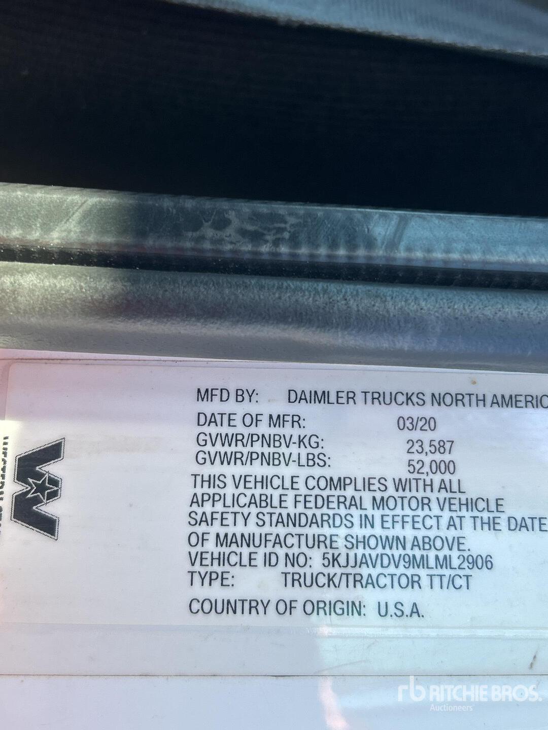 Detroit DD13 470 hp Engine, 2020 US EPA Label, 7813.03 Engine hrs, Eaton Fuller FRO-16210C 10-Speed Manual Transmission, 12000 lb Front Axle, 40000 lb Rears, 52000 lb GVWR, Engine Brake, 200 in Wheelbase, Air Suspension, Aluminum Outer Wheels, 11R24.5, Air Sliding 5th Wheel, Dual Fuel Tanks, Headache Rack