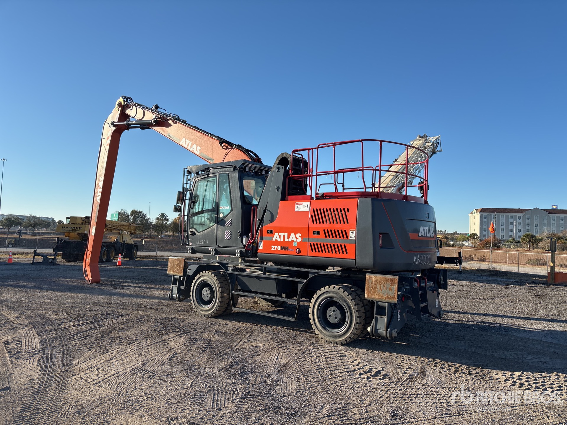 Located in Lane 1 Spot 11, Air Conditioner, Hydraulic Cab Riser, Cab Screens, Rear & Side View Cameras, 2022 US EPA Label, Requires Diesel Exhaust Fluid, 22 ft 5 in Stick, Front and Rear Stabilizers, 10.00x20 Tires