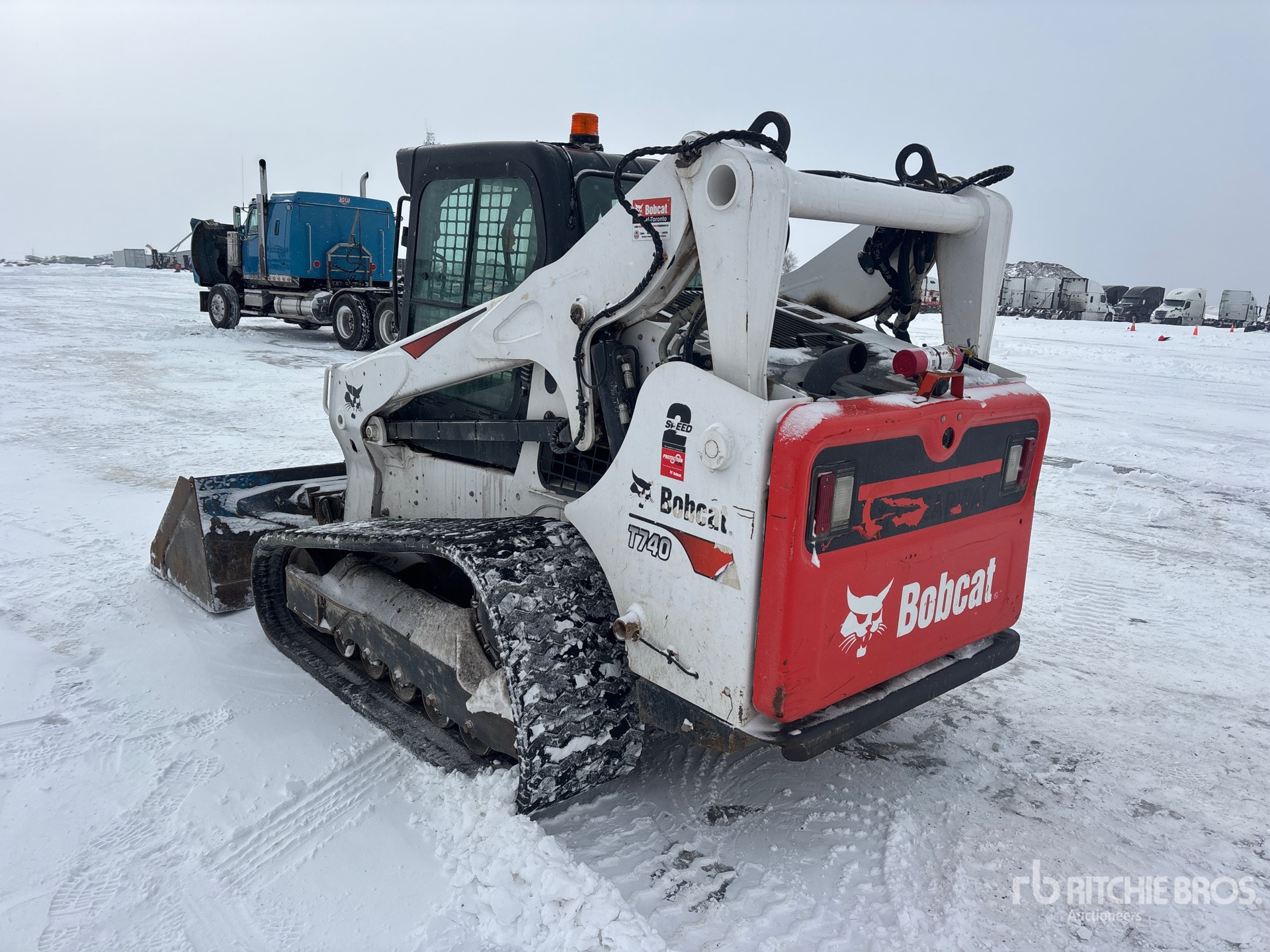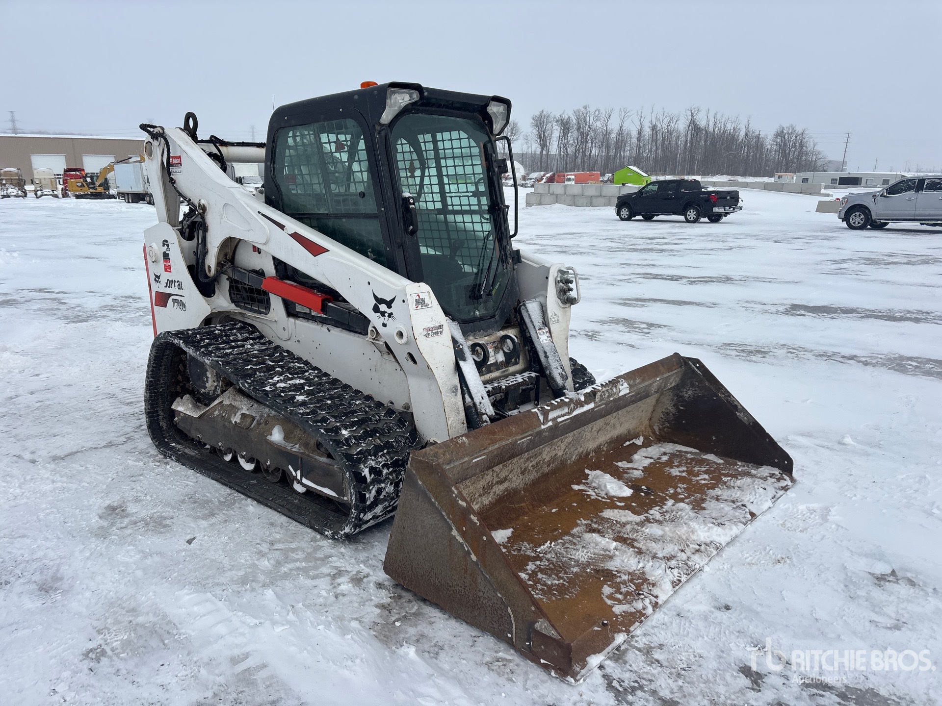 Enclosed Cab, Air Conditioner, Ride Control, Joystick Steering, Control Pattern Changer, 2022 US EPA Label, CARB Compliant, 18 in Track Belts, Hydraulic Coupler, 85 in Bucket, Forks