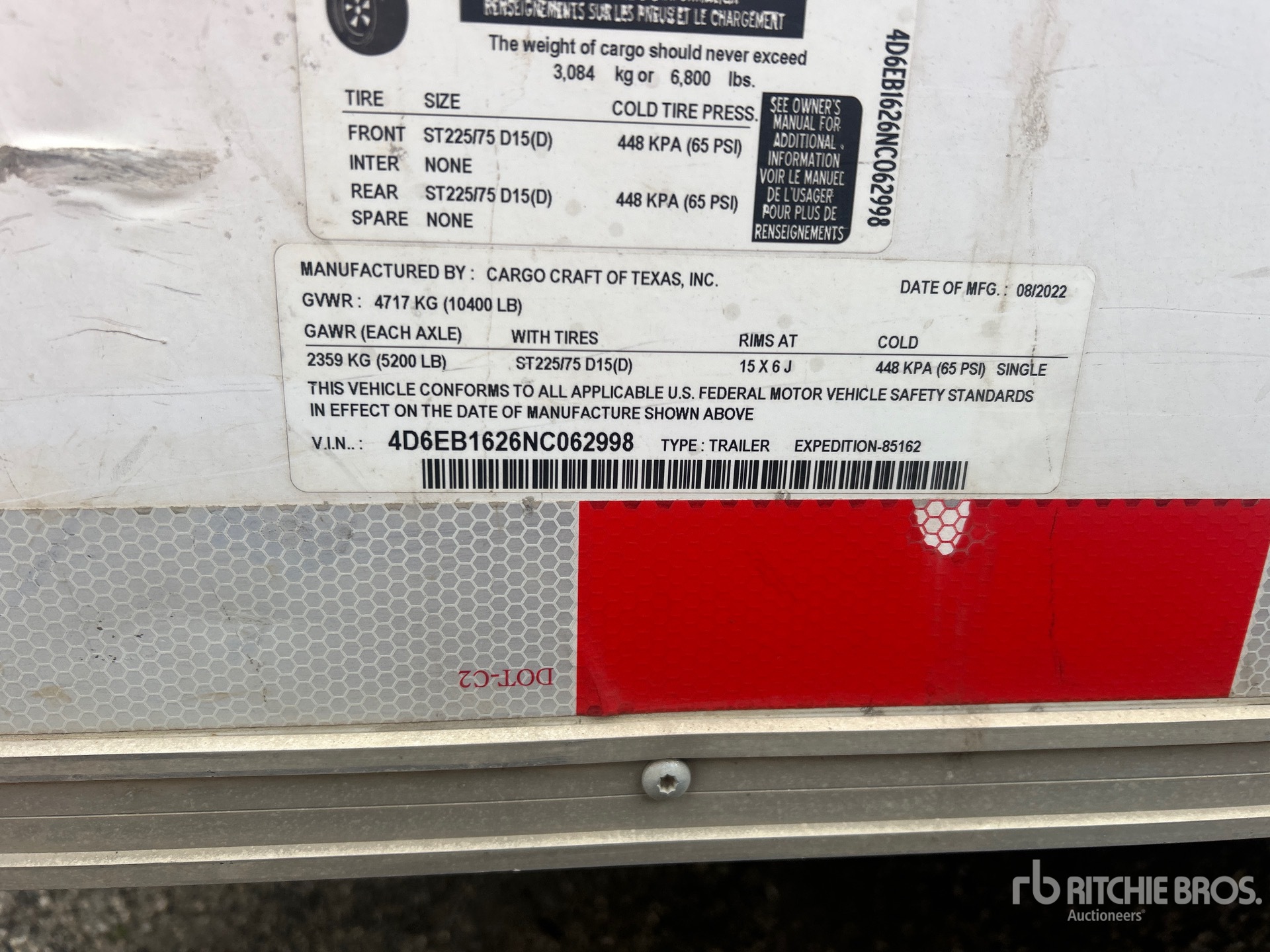 The detailed equipment information is limited in scope, and Ritchie Bros. Auctioneers has not inspected any aspects or components of the equipment other than those expressly set forth herein. Unless expressly stated, we make no representations or warranties, express or implied, concerning the equipment or its components, including without limitation any representations or warranties concerning functionality, conformity or compliance with any safety standard or requirement of any applicable authority or regulatory body, fitness for any particular purpose, or merchantability. You are strongly advised to perform your own detailed inspection of the equipment prior to bidding.