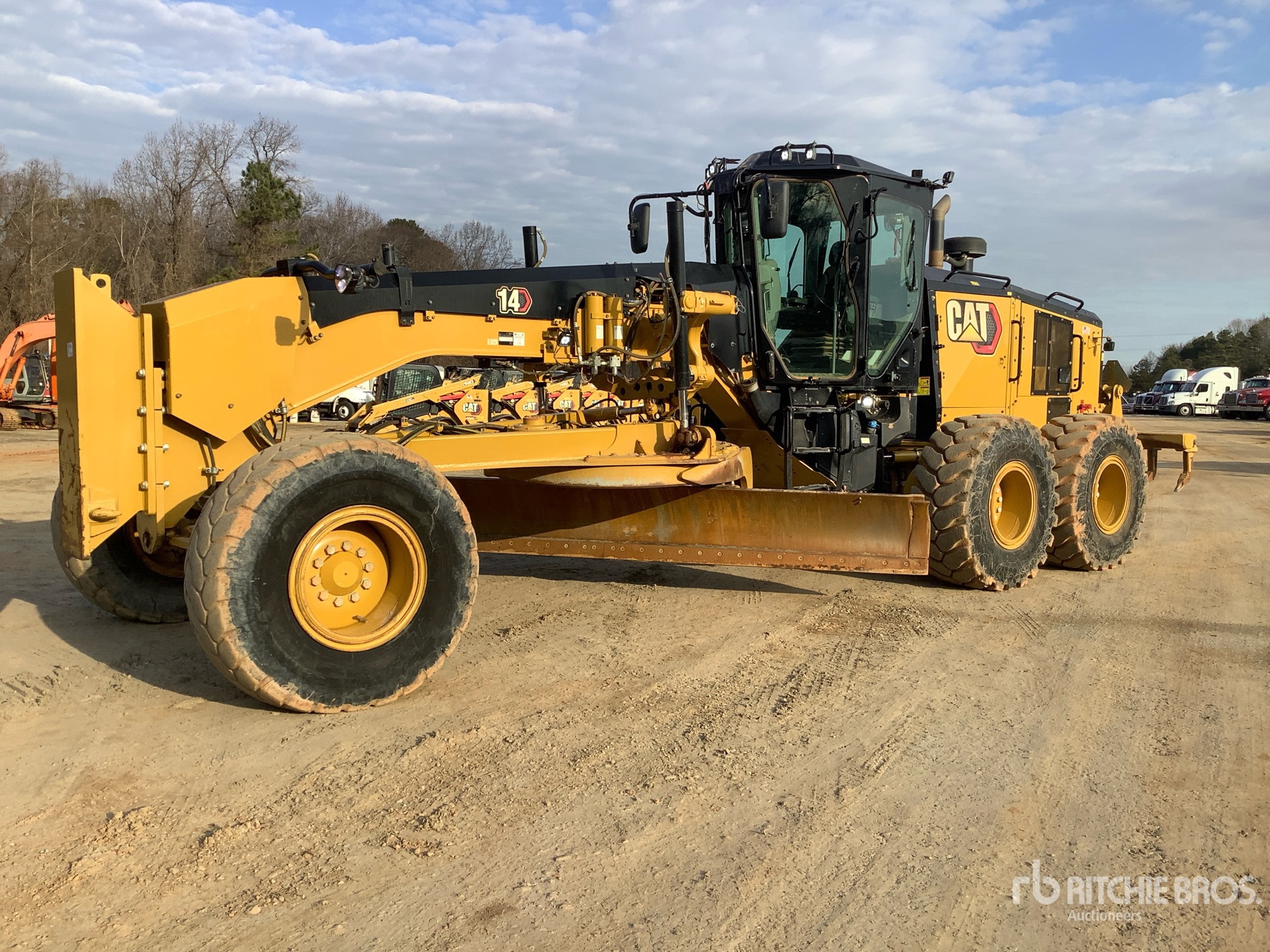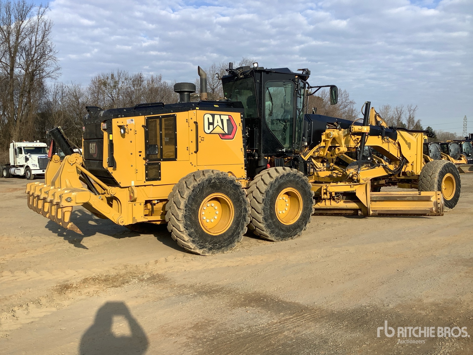 Enclosed Cab, Air Conditioner, Joystick Steering, Rear View Camera, Differential Lock, Pre-Wired for Grade Control, Requires Diesel Exhaust Fluid, 16 ft / 4.88 m Moldboard, Push Block, Accumulators, Ripper, Fast Fuel System, Rear Auxiliary Hydraulics, 20.5-25 Tires, Equipment-from-Ames-Construction