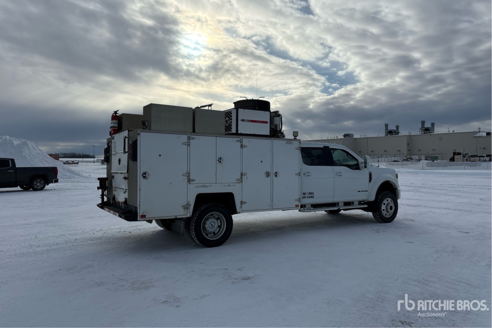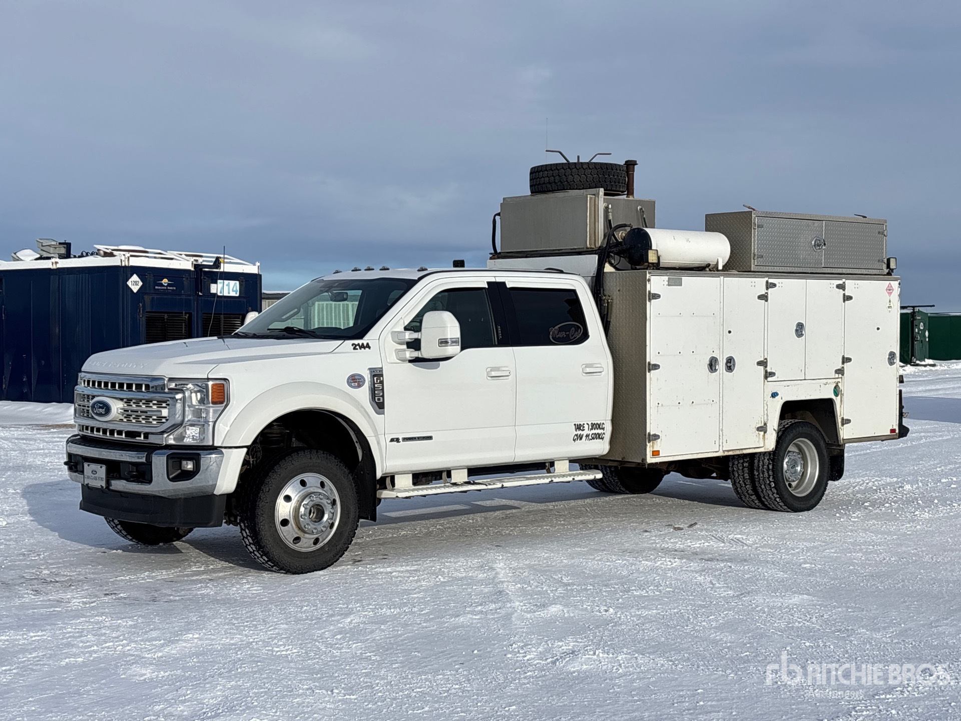 V8 6.7 L Diesel Engine, 2021 US EPA Label, Requires Diesel Exhaust Fluid, 5146 Engine hrs, Exhaust Brake, Automatic Transmission, 6500 lb Front Axle, 14706 lb Rears, 19500 lb GVWR, Aluminum Wheels, 245/70R19.5 Front Tires, 245/70R19.5 Rear Tires, 203 in Wheelbase, PTO, Brutus 11 ft 6 in Body, IMT CAS40P 40 cfm Hydraulic Air Compressor, Air Hose Reel, Cheetah 200-4 Multi Function 6 kW 200 A Hydraulic Driven Welder, Diesel Tank, (3) Product Tanks w/Graco Pumps, Oil Recovery System, Complete-Retirement-Dispersal-for-Mur-Cal-Services-Ltd
