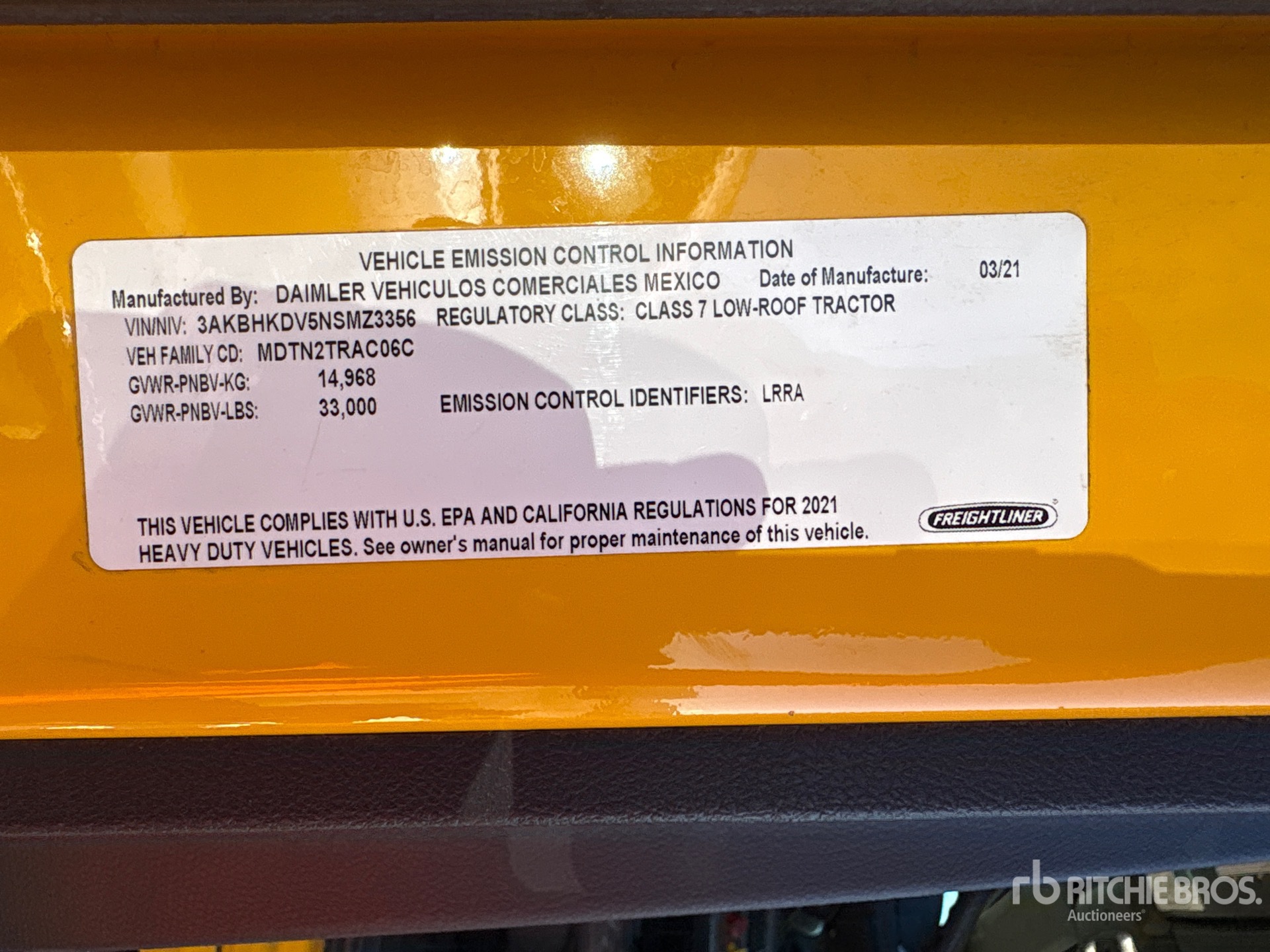 Located in Lane 5 Spot 32, Detroit DD13 410 hp Engine, 2021 US EPA Label, 9056 Engine hrs, Detroit DT12-DB-1450 12-Speed Automated Transmission, 12000 lb Front Axle, 23000 lb Rears, 33000 lb GVWR, Retarder, 174 in Wheelbase, Air Suspension, 11R22.5