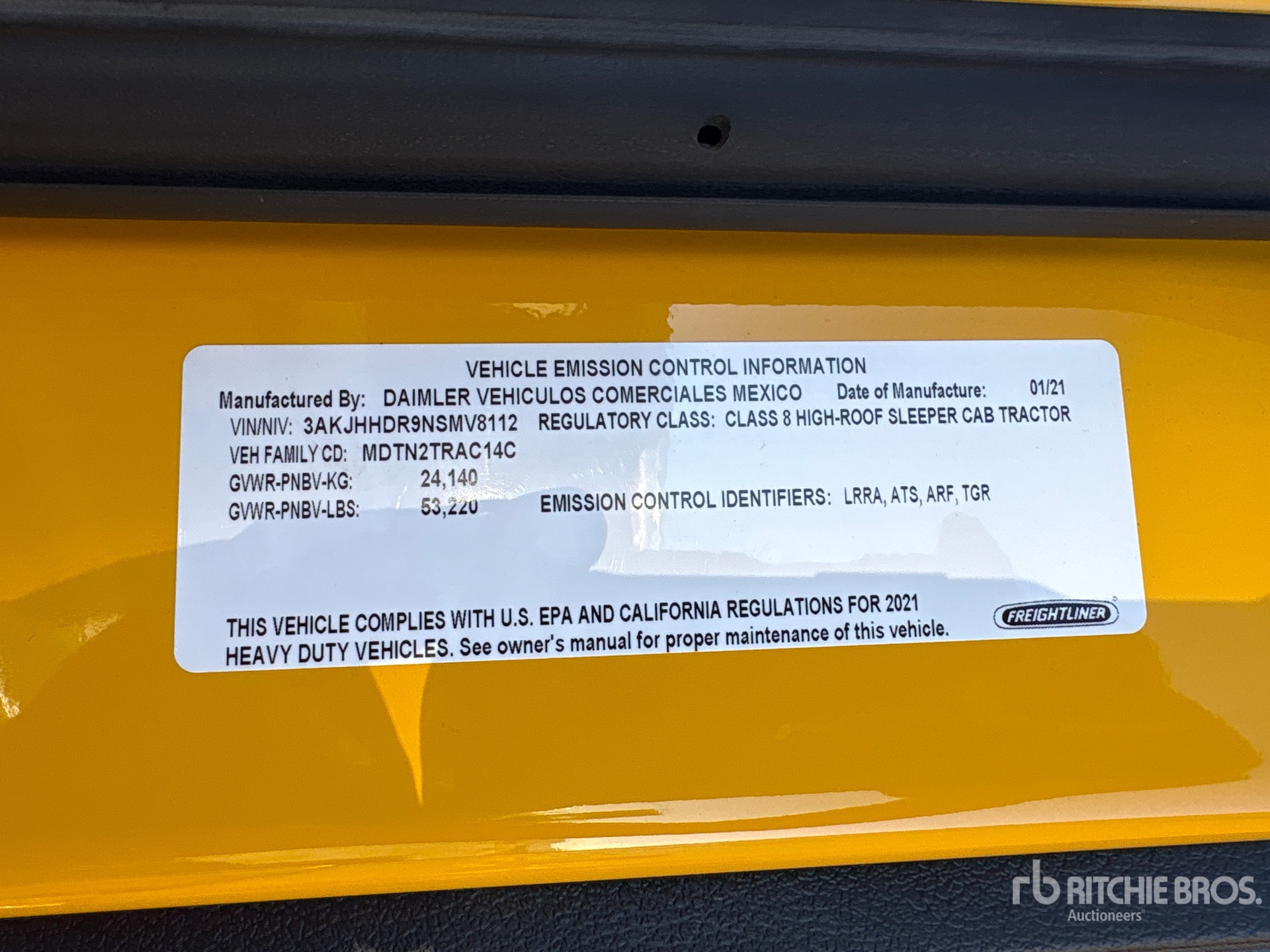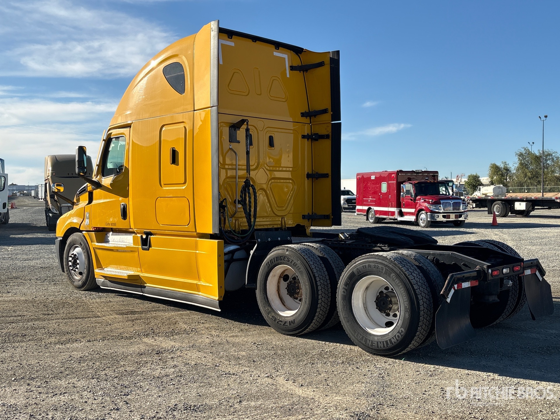 Detroit DD15 455 hp Engine, 2021 US EPA Label, 13412 Engine hrs, Detroit DT12-1650-OH1 12-Speed Automated Transmission, 13220 lb Front Axle, 20000 lb Rears, 53220 lb GVWR, Retarder, Differential Lock, 72 in High Rise Sleeper Cab, Bunk Beds, Bunk Heater, 229 in Wheelbase, Air Suspension, 11R22.5, Air Sliding 5th Wheel, Dual Fuel Tanks