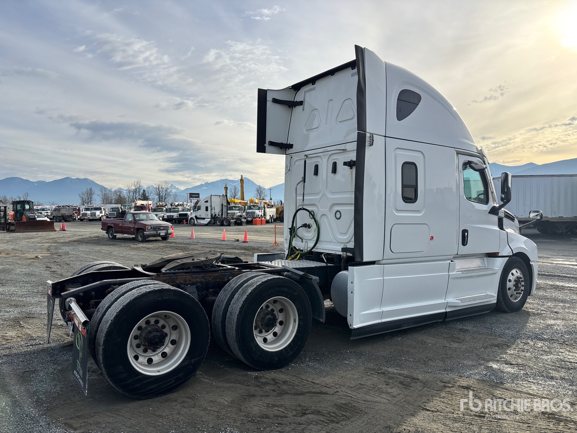Located in Lane 13 Spot 7, Detroit DD15 505 hp Engine, 2021 US EPA Label, 10324 Engine hrs, Detroit DT12-1650-OH1 12-Speed Automated Transmission, 13220 lb Front Axle, 40000 lb Rears, 53220 lb GVWR, Engine Brake, 70 in High Rise Sleeper Cab, Bunk Beds, 229 in Wheelbase, Air Suspension, Aluminum Wheels, 11R22.5, Air Sliding 5th Wheel, Dual Fuel Tanks, NOTICE-TO-US-BIDDERS: this asset is likely exempt from US import tariffs as it was manufactured in the US. Bidders are responsible for confirming with their customs broker