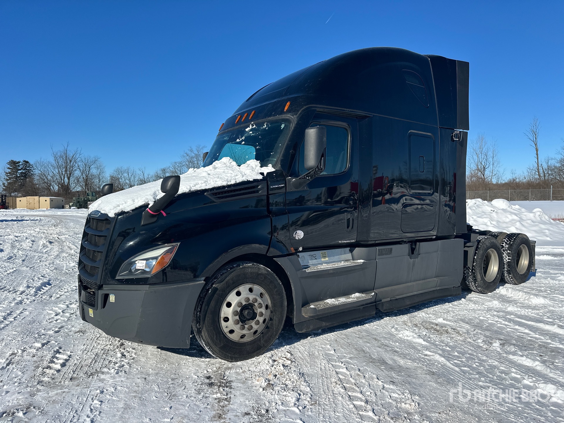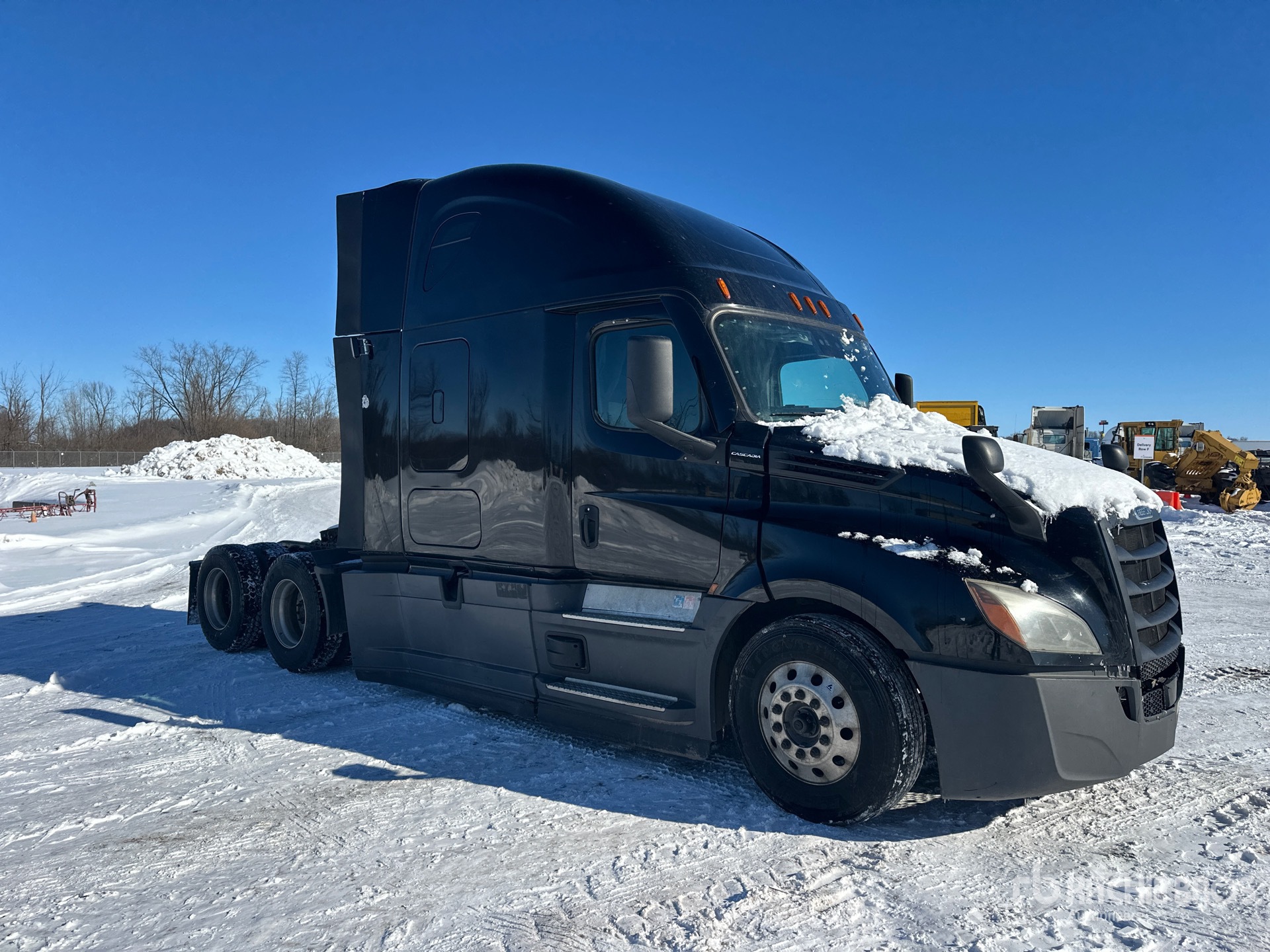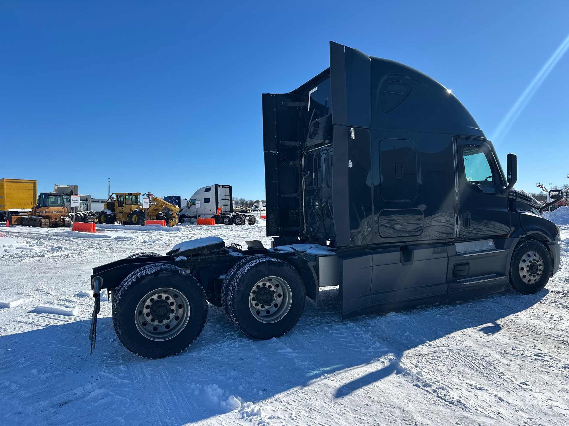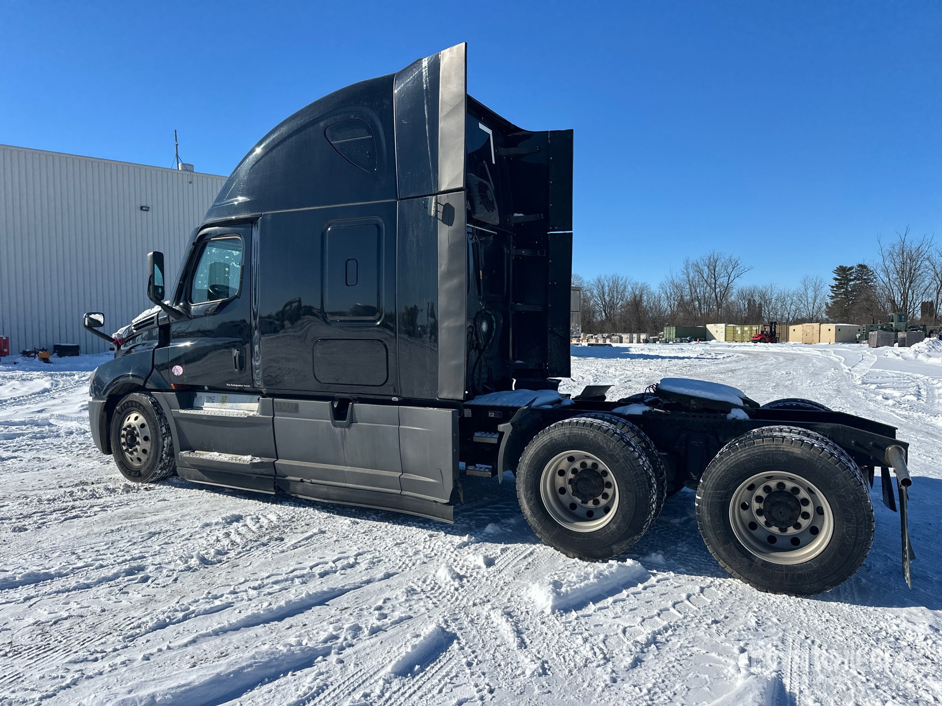 Located in Lane 32 Spot 23, Detroit DD15 455 hp Engine, 2021 US EPA Label, 16665 Engine hrs, Detroit DT12-DA-1750 12-Speed Automated Transmission, 12500 lb Front Axle, 40000 lb Rears, 52500 lb GVWR, Engine Brake, 70 in High Rise Sleeper Cab, Bunk Beds, 223 in Wheelbase, Air Suspension, Aluminum Wheels, 295/75R22.5 Front Tires, 295/75R22.5 Rear Tires, Air Sliding 5th Wheel, Dual Fuel Tanks