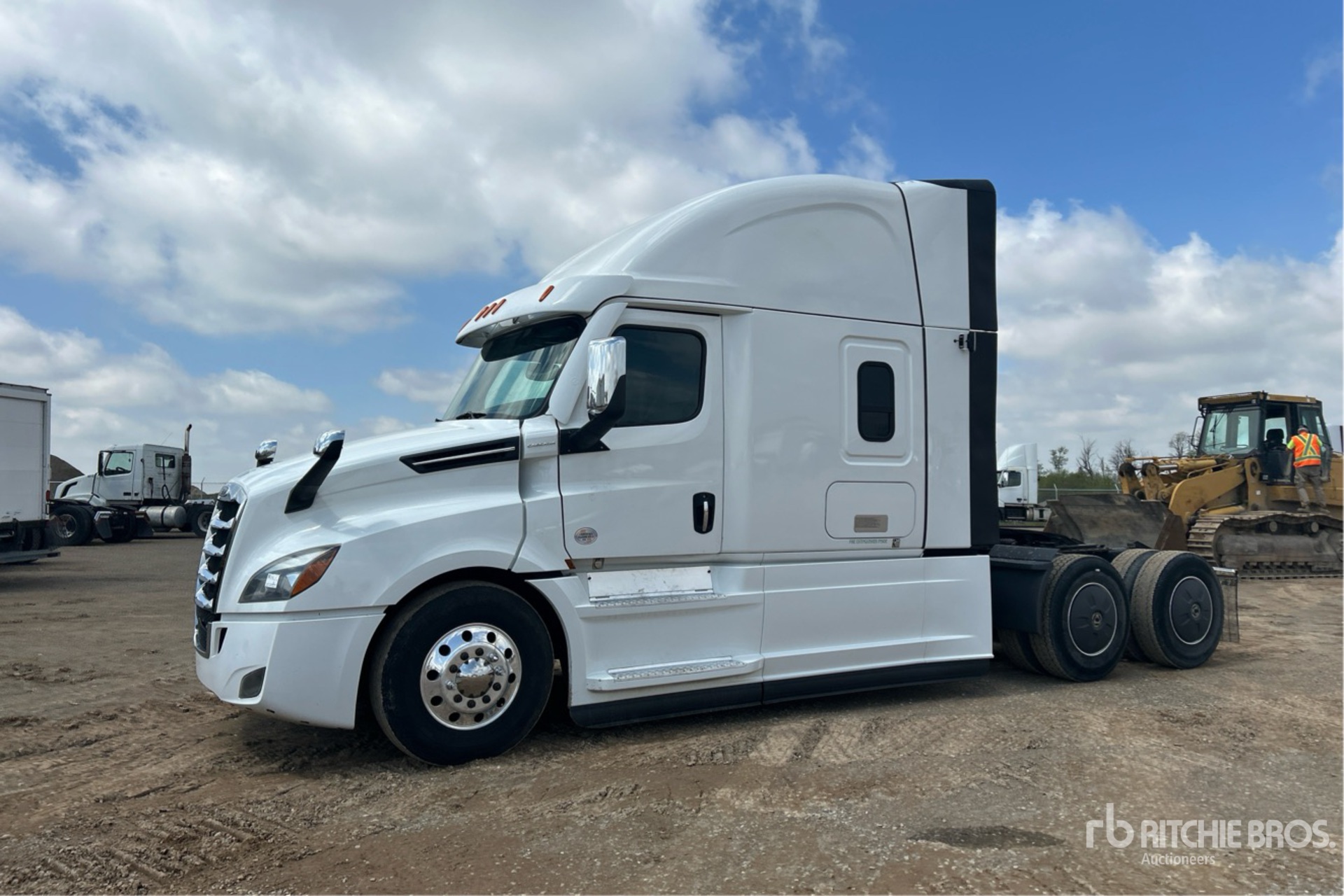 Detroit DD15 6 Cylinder 14.8 L Diesel 505 hp Engine, US EPA Label, CARB Compliant, Requires Diesel Exhaust Fluid, 7458 Engine hrs, Engine Brake, Automatic Transmission, Double Differential Locks, 13220 lb Front Axle, 40000 lb Rears, 53220 lb GVWR, Air Ride Cab, 70 in High Rise Sleeper Cab, Bunk Beds, Bunk Heater, Aluminum Outer Wheels, 11R22.5, Air Ride Suspension, 231 in Wheelbase, Air Sliding 5th Wheel, Dual Fuel Tanks, NOTICE-TO-US-BIDDERS: this asset is likely exempt from US import tariffs as it was manufactured in the US. Bidders are responsible for confirming with their customs broker.