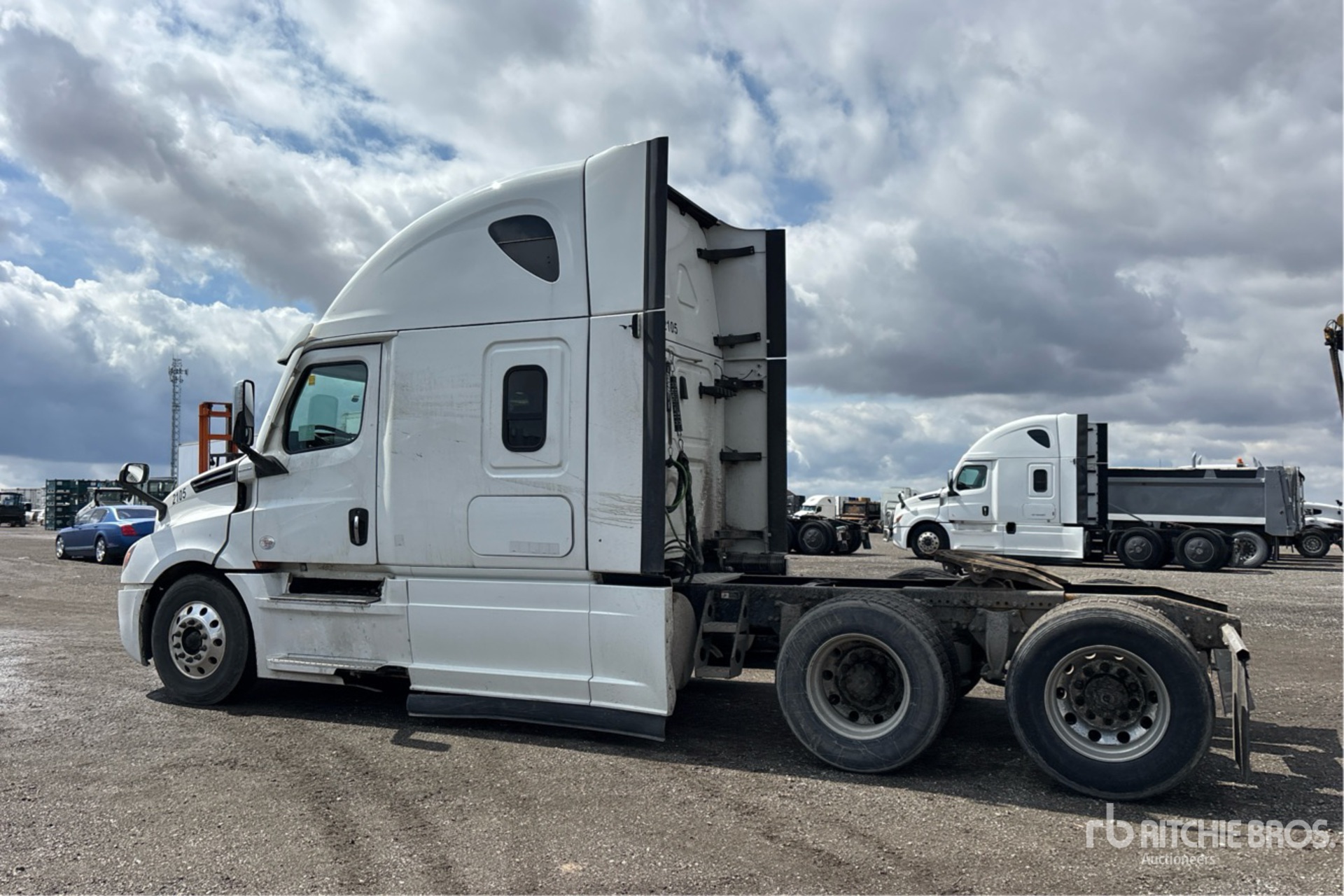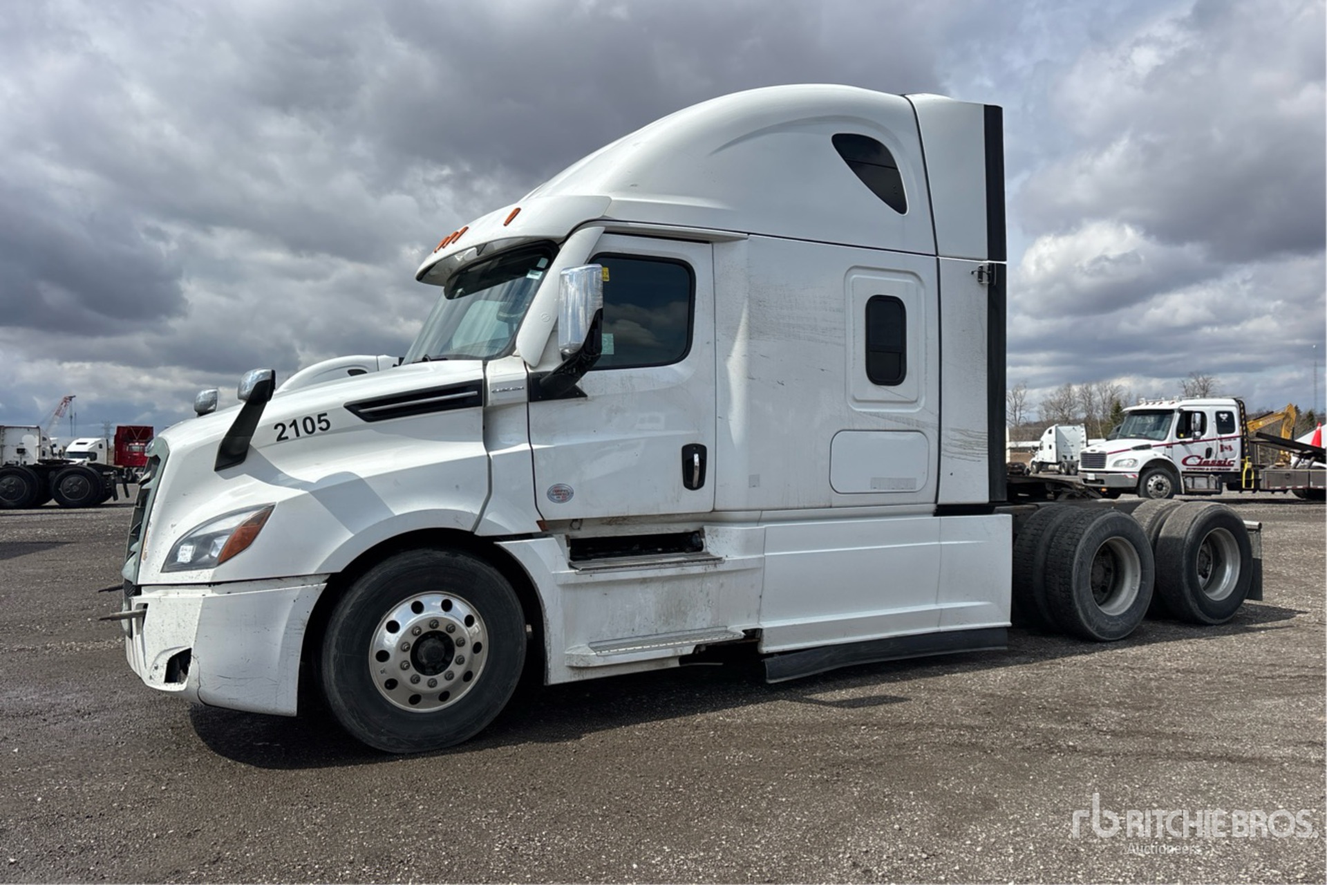 Located in Lane 22 Spot 57, Detroit DD15 505 hp Engine, 2021 US EPA Label, 23350 Engine hrs, Detroit DT12-1650 OH 12-Speed Automated Transmission, 13220 lb Front Axle, 40000 lb Rears, 53220 lb GVWR, Engine Brake, Double Differential Locks, 70 in High Rise Sleeper Cab, Bunk Beds, 229 in Wheelbase, Air Suspension, Aluminum Wheels, 11R22.5 Front Tires, 275/80R22.5 Rear Tires, Air Sliding 5th Wheel, Dual Fuel Tanks