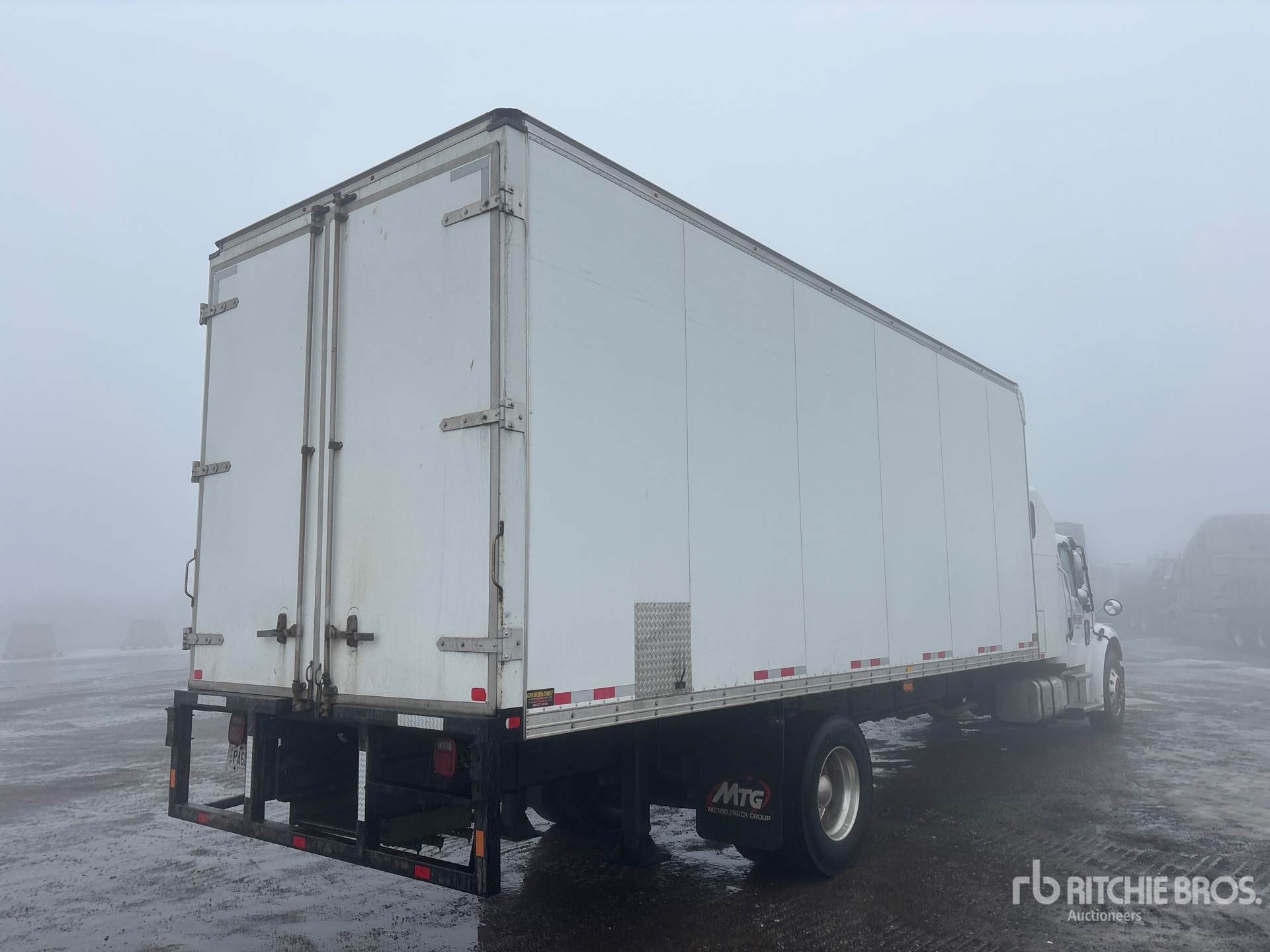 Cummins B6.7 6 Cylinder 6.7 L Diesel 300 hp Engine, 2021 US EPA Label, CARB Compliant, Requires Diesel Exhaust Fluid, 10888 Engine hrs, Engine Brake, Automatic Transmission, 12000 lb Front Axle, 21000 lb Rears, 33000 lb GVWR, 60 in Flat Top Sleeper Cab, Aluminum Wheels, 11R22.5, Airliner Air Ride Suspension, 307 in Wheelbase, Crew Chief 24 ft x 102 in Wide x 103 in High Body