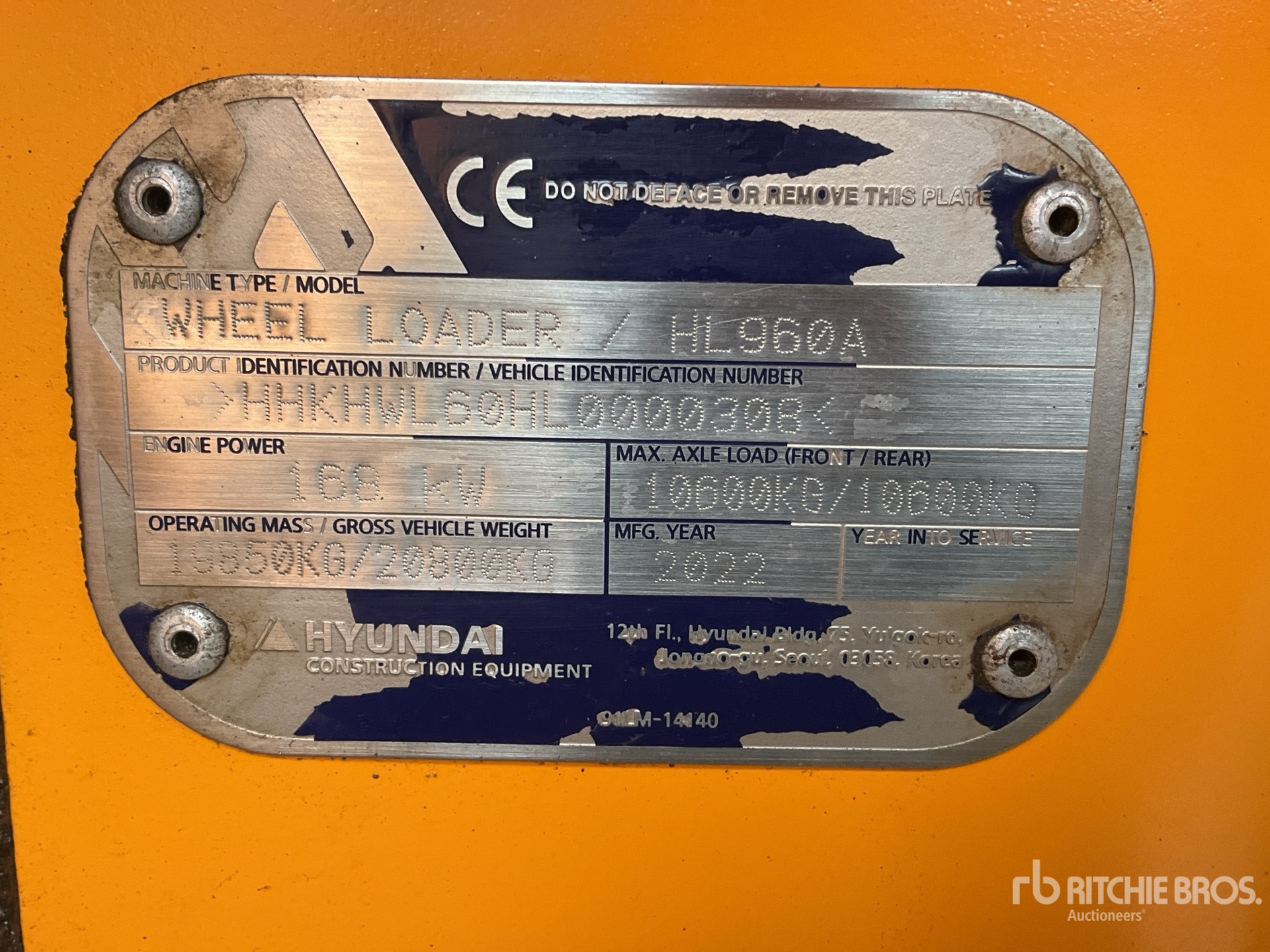 Enclosed Cab, Air Conditioner, Rear View Camera, Air Ride Seat, Ride Control, Autoshift, HYUNDAI On-Board Scale, Requires AdBlue, 2900 mm Bucket, 23.5R25 Tires