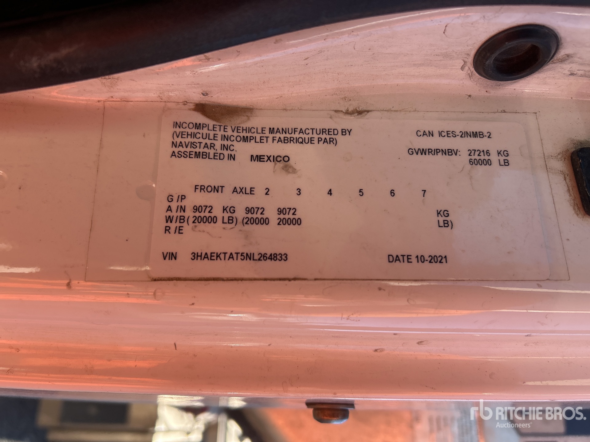 The detailed equipment information is limited in scope, and Ritchie Bros. Auctioneers has not inspected any aspects or components of the equipment other than those expressly set forth herein. Unless expressly stated, we make no representations or warranties, express or implied, concerning the equipment or its components, including without limitation any representations or warranties concerning functionality, conformity or compliance with any safety standard or requirement of any applicable authority or regulatory body, fitness for any particular purpose, or merchantability. You are strongly advised to perform your own detailed inspection of the equipment prior to bidding.