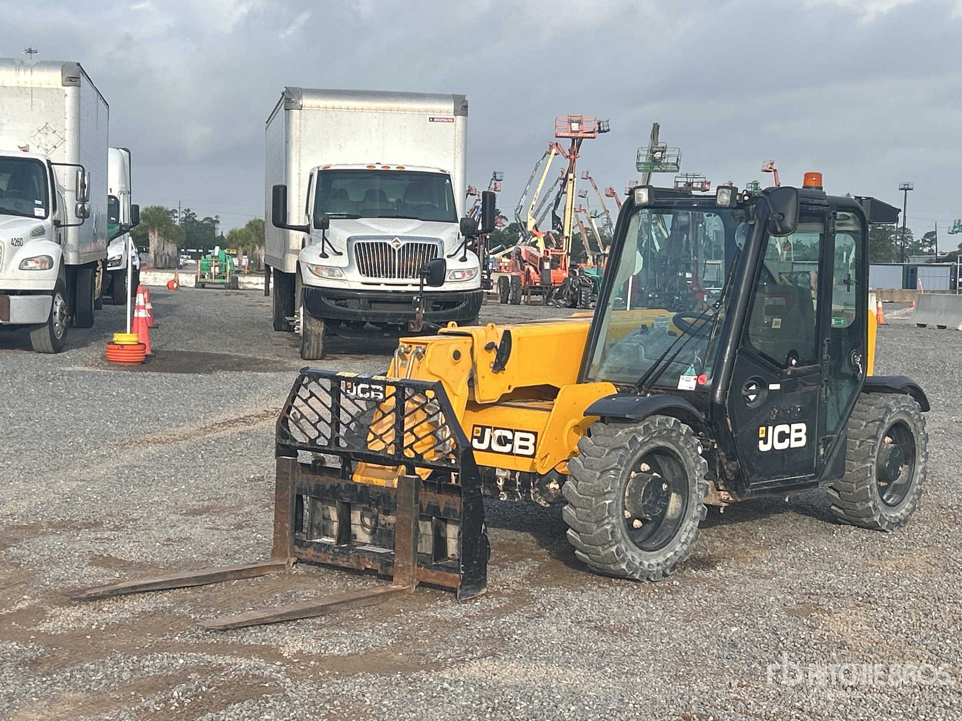 Located in Lane 13 Spot 29, Enclosed Cab, Air Conditioner, 20 ft Max Lift Height, 5500 lb Max Lift Capacity, 2021 US EPA Label, 48 in Forks, Manual Coupler, Auxiliary Hydraulic Plumbing, 33X12-20 Aperture Tires