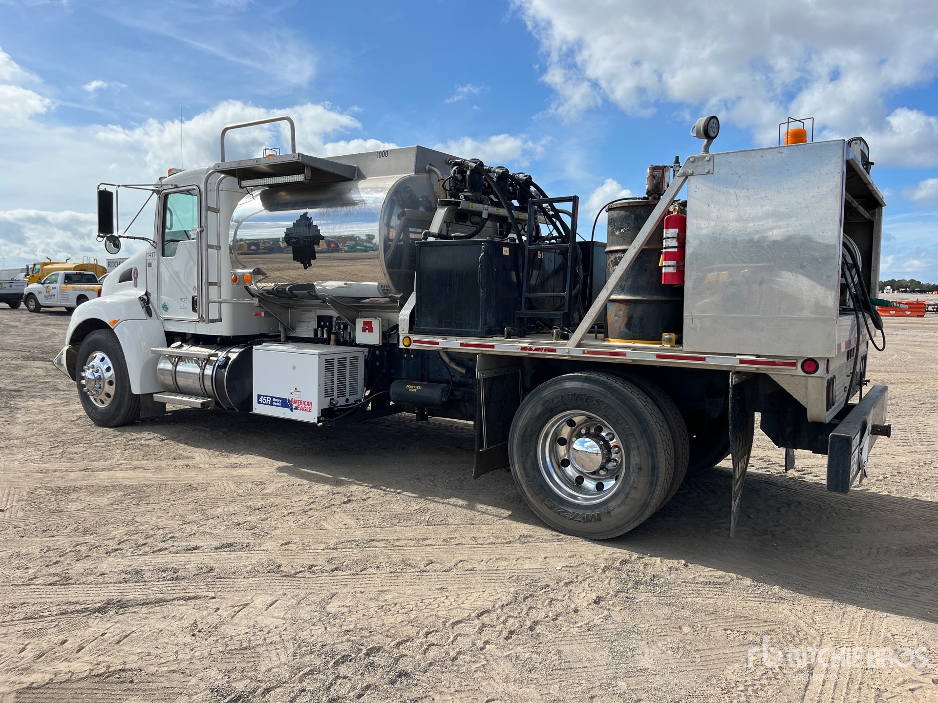 Paccar PX-9 6 Cylinder 8.9 L Diesel 300 hp Engine, 2021 US EPA Label, Requires Diesel Exhaust Fluid, 6407 Engine hrs, Engine Brake, Allison 3000 Automatic Transmission, 12000 lb Front Axle, 21000 lb Rears, 4.63:1 Axle Ratio, 33000 lb GVWR, Aluminum Wheels, 11R22.5, Spring Suspension, 213 in Wheelbase, PTO, oilsmens Body, 1000 gal Diesel Tank, ( 2 ) Oil Tanks, ( 7 ) Hose Reels, DEF Tank, Grease Barrel, hook, American eagle 45R PTO Air Compressor