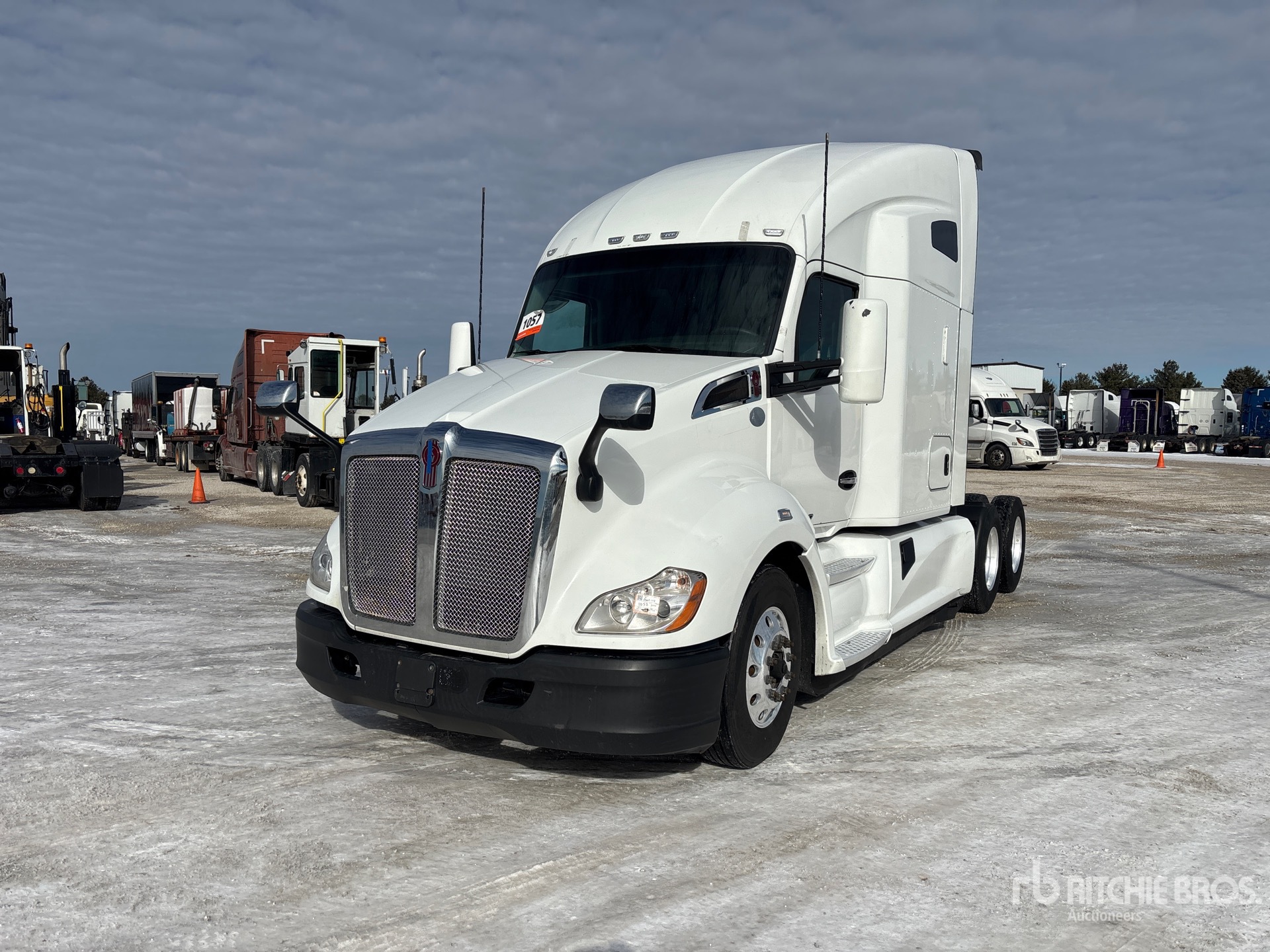 Located in Lane 19 Spot 1, Paccar MX-13 455 hp Engine, 2021 US EPA Label, Paccar Automated Transmission, 12350 lb Front Axle, 40000 lb Rears, 52350 lb GVWR, Engine Brake, Differential Lock, 72 in High Rise Sleeper Cab, Bunk Beds, 219 in Wheelbase, Air Suspension, Aluminum Outer Wheels, 295/75R22.5, Air Sliding 5th Wheel, Dual Fuel Tanks