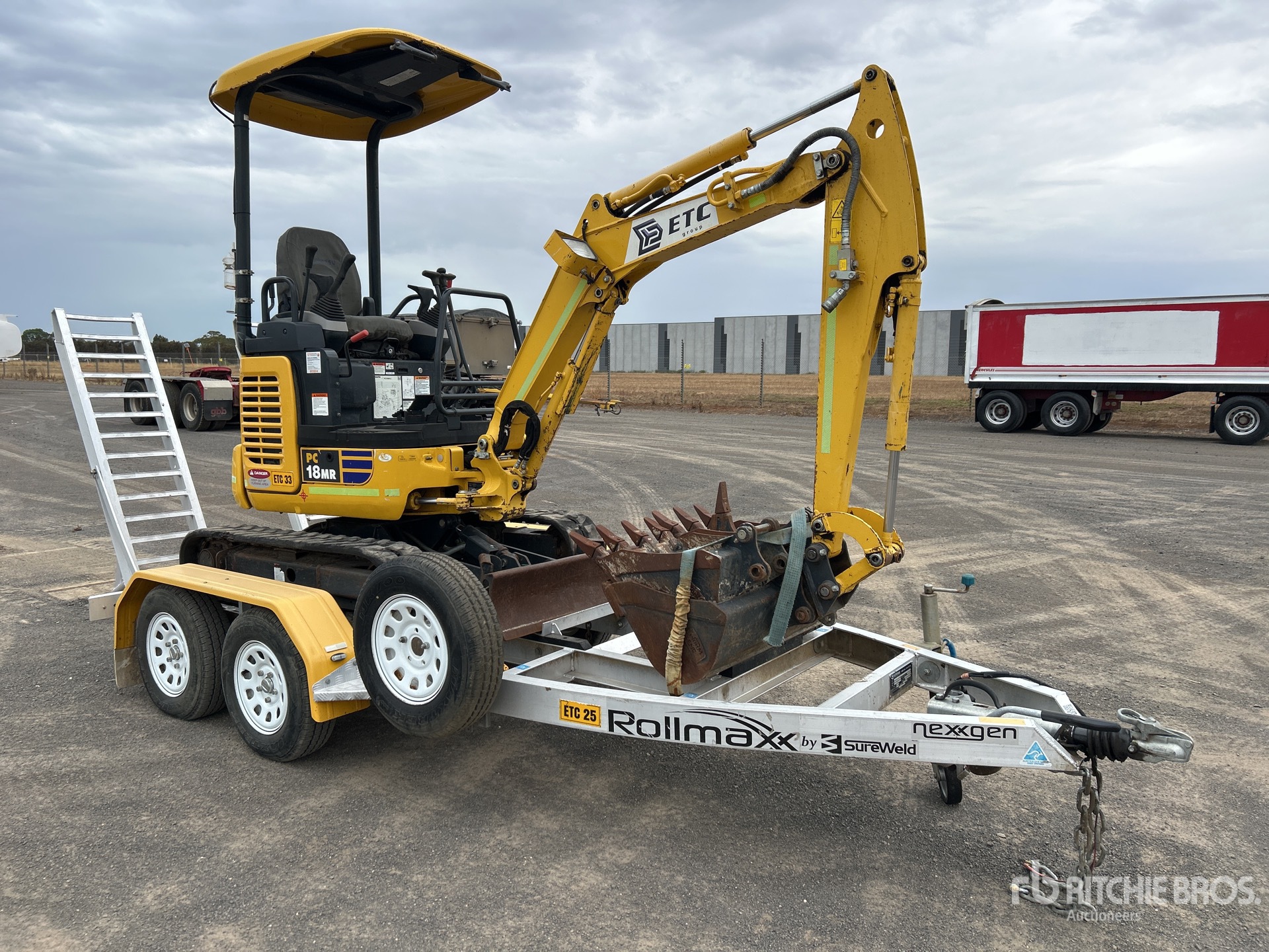 Swing Boom, 1200 mm Stick, Auxiliary Hydraulic Plumbing, Backfill Blade, 230 mm Rubber Tracks, Expandable Width Tracks, Manual Quick Coupler, 900 mm Cleanup Bucket, Additional 450 mm Digging Bucket, 300 mm Digging Bucket, Ripper